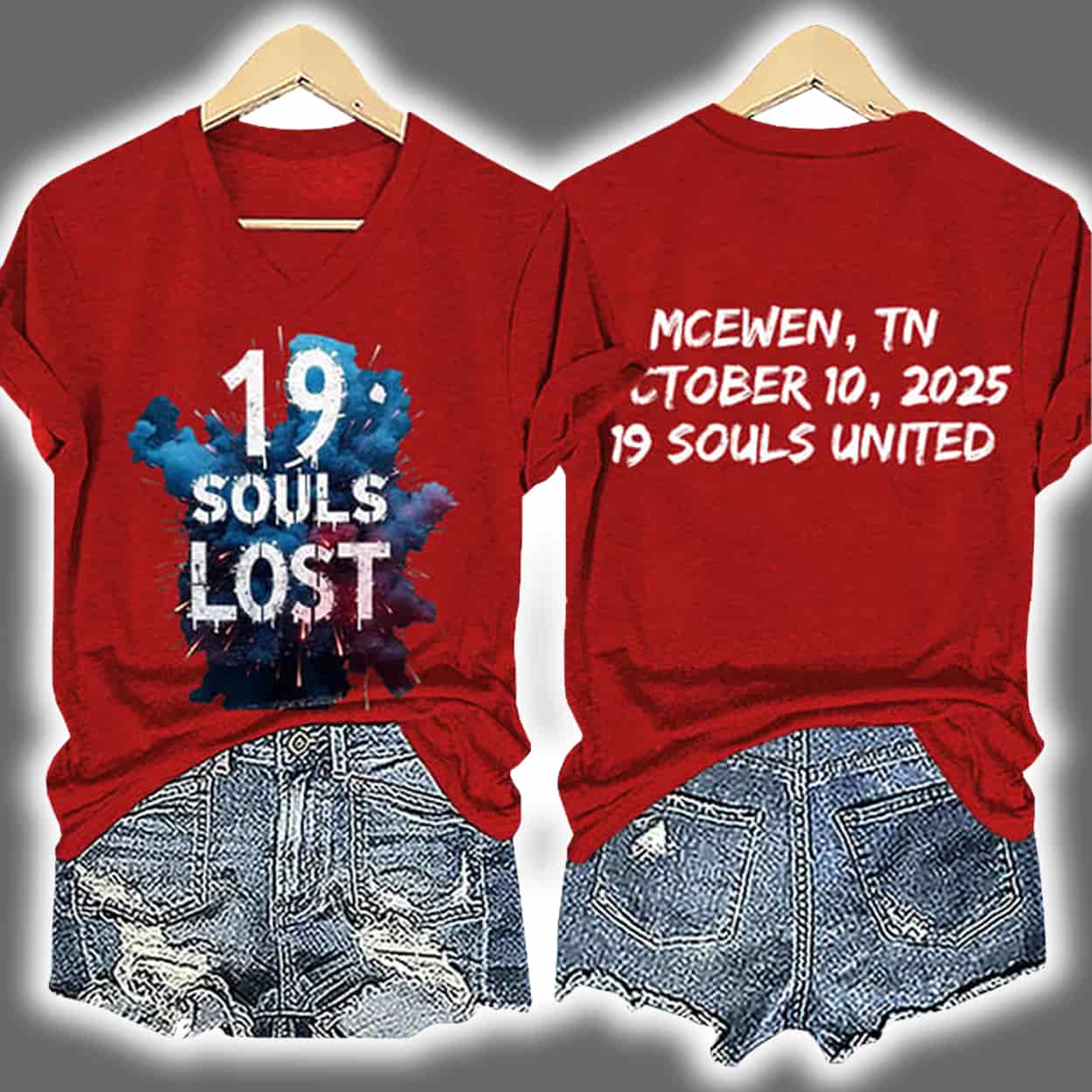 Commemorate courage and unity with the 19 Souls Lost Mcewen Tn October 10 2025 19 Souls United Two-Sided Shirt—an artistic tribute to the lives remembered in McEwen, TN, on October 10, 2025.