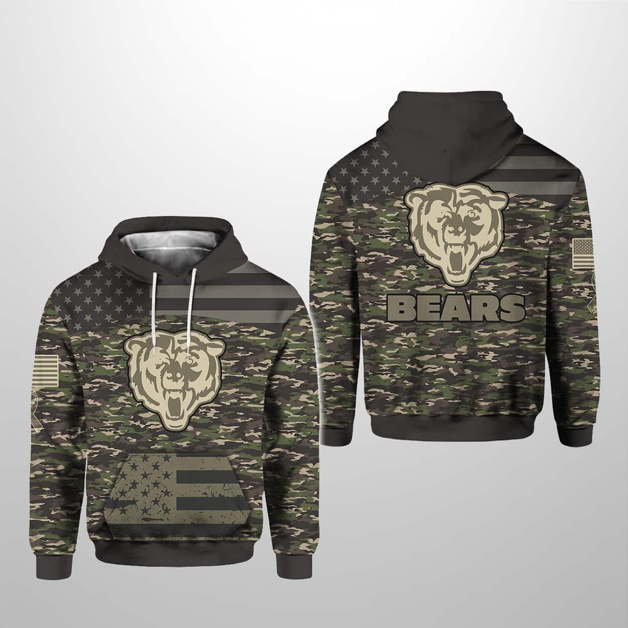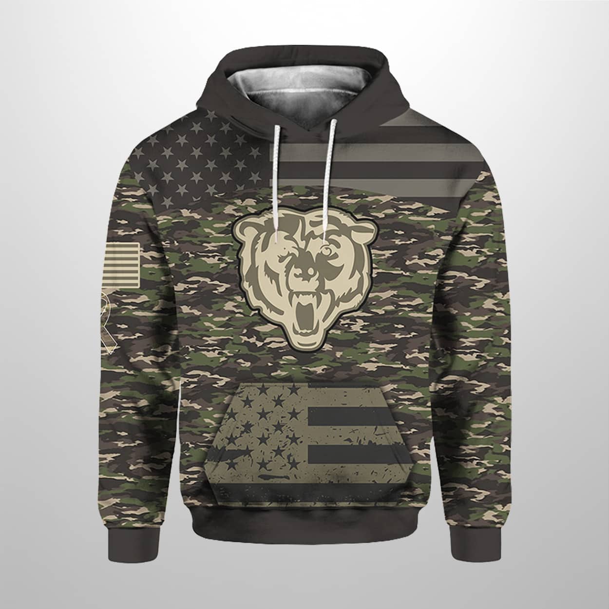 Honor the bold and the brave with the 2025 Bears Salute to Service Camo Hoodie—a fierce fusion of patriotism and team pride.