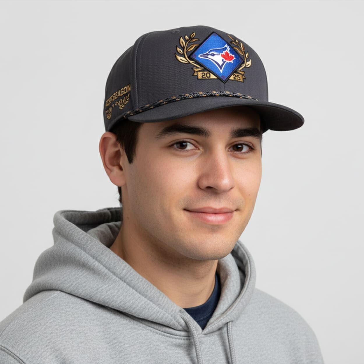 This isn’t just a hat—it’s a declaration. Inspired by the grit, grind, and golden moments of the Blue Jays’ playoff, every stitch tells a story of resilience and flair. The laurel branches evoke victory, the diamond crest reflects the battlefield of October baseball, and the gold cord? That’s for the dreamers who dare to stand out.