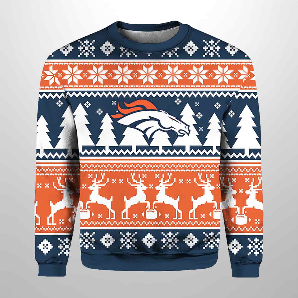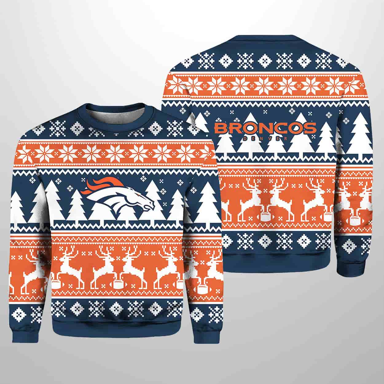 2025 Broncos Reindeer Football Christmas Ugly Sweater