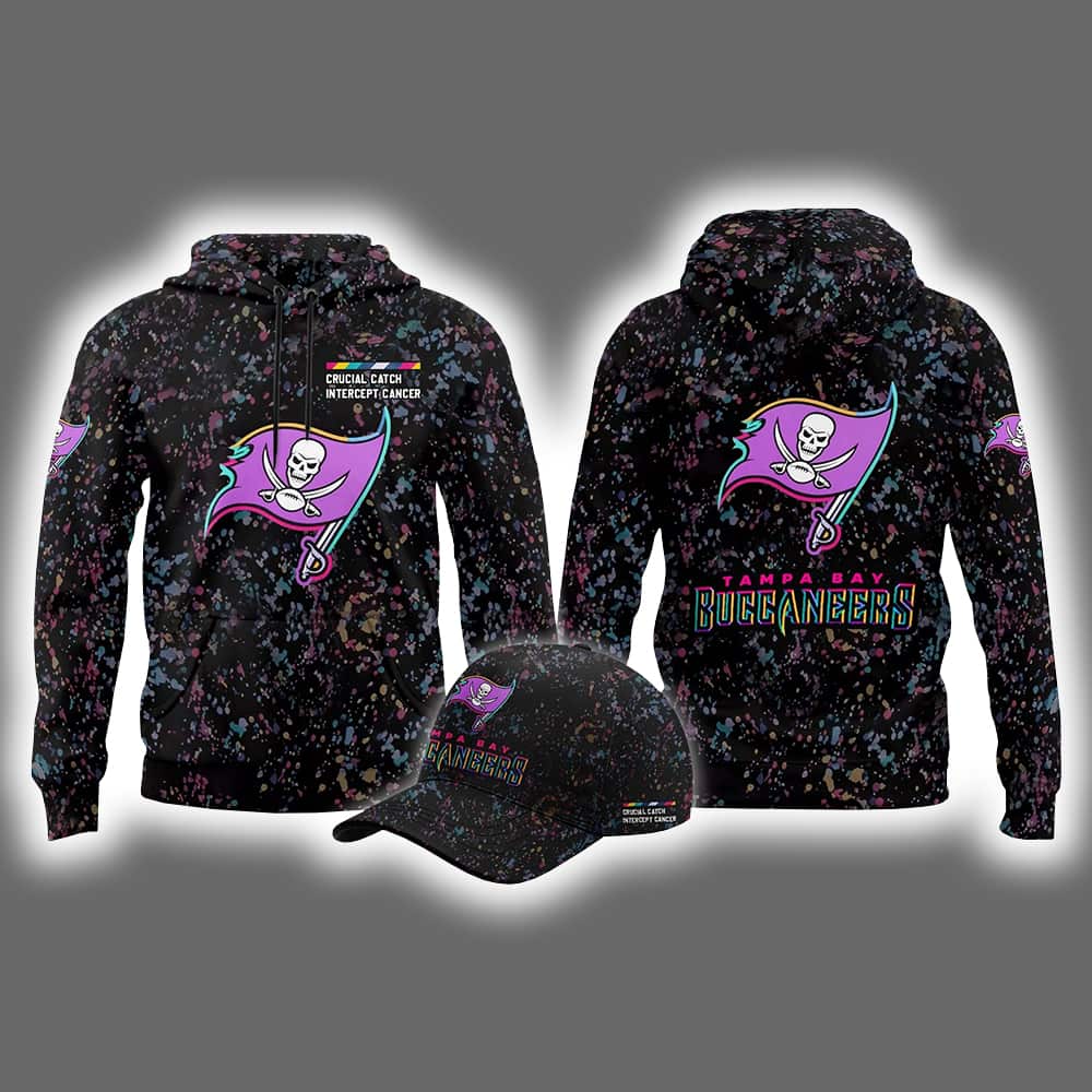 Ride the Wave of Courage: 2025 Buccaneers Crucial Catch Intercept Cancer Hoodie Cap Unites Style and Strength