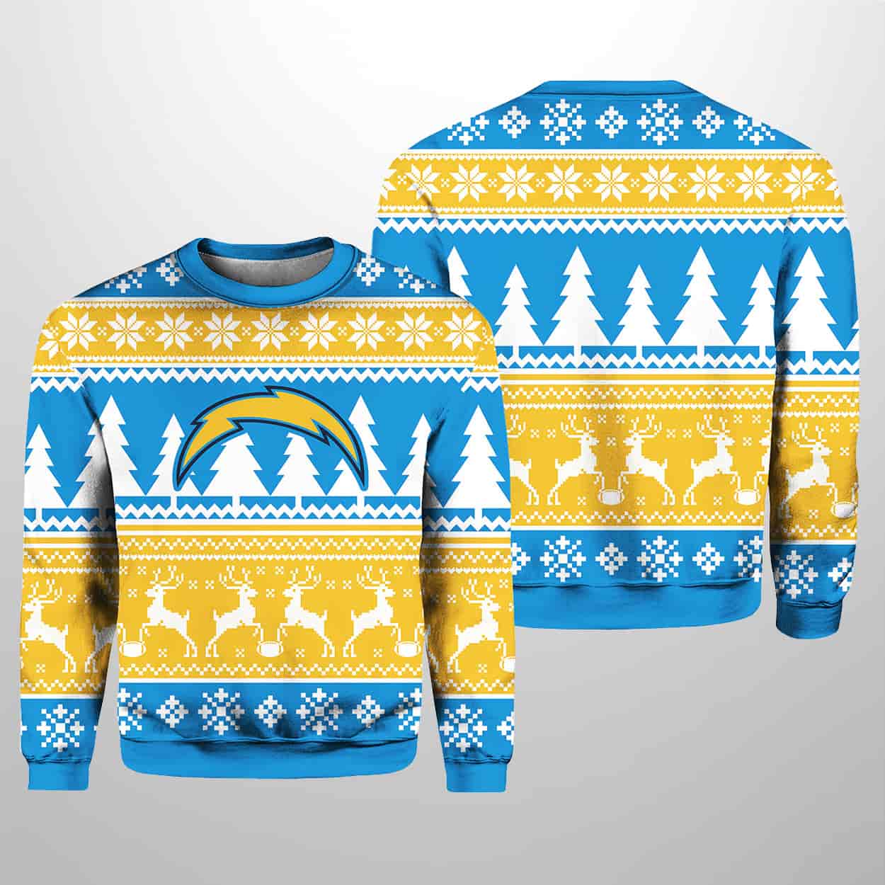 So why settle for ordinary when you can bolt into the holidays with style? Grab your 2025 Christmas Chargers Reindeer Football Ugly Sweater now and let your fandom sparkle brighter than the stadium lights.