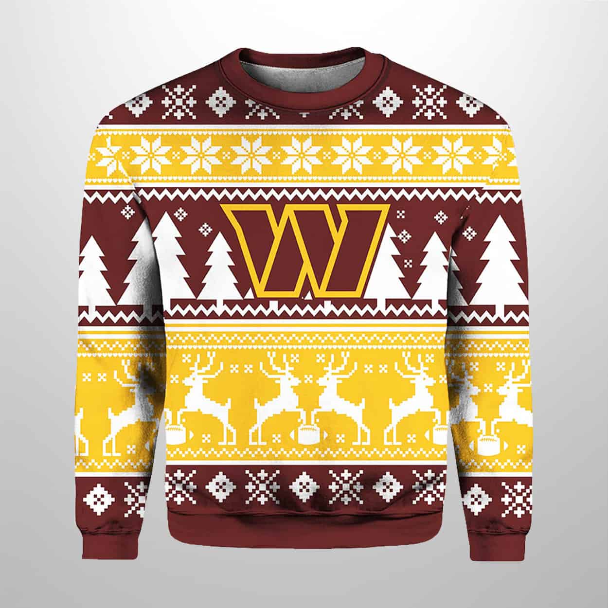 Celebrate the holidays with team spirit and festive flair in the 2025 Christmas Commanders Reindeer Football Ugly Sweater—where gridiron grit meets holiday cheer.
