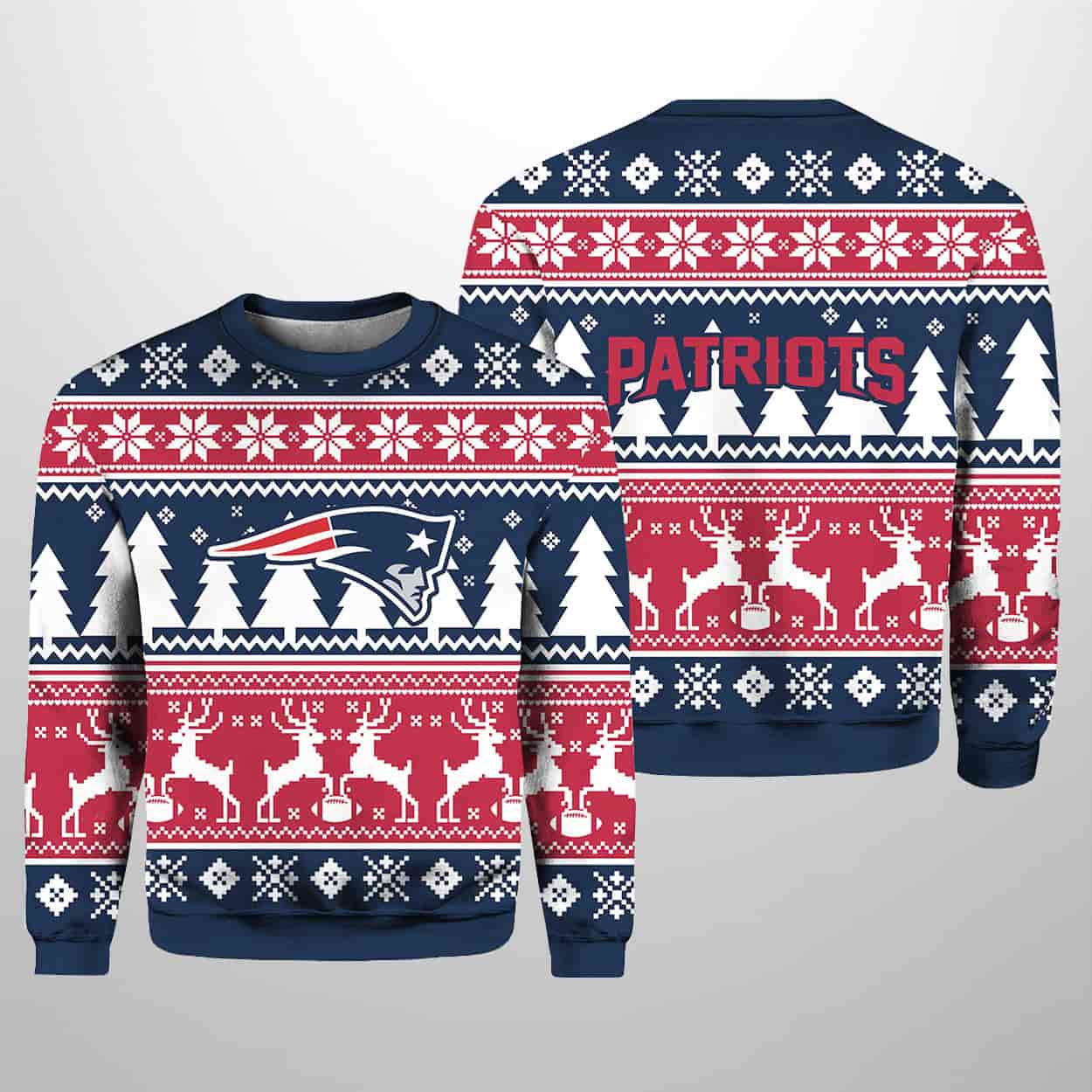 2025 Christmas Patriots Reindeer Football Ugly Sweater