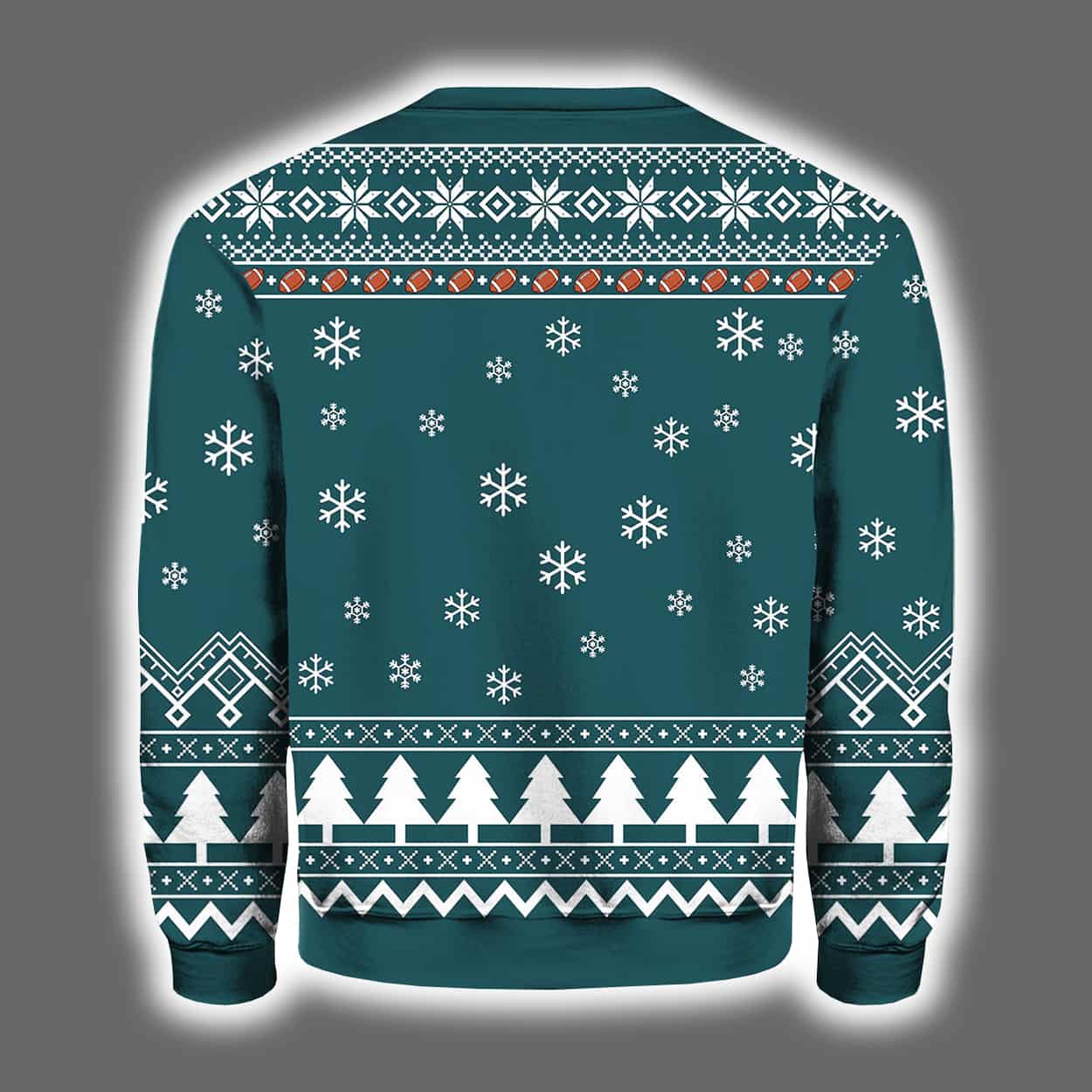 This isn’t just a sweater—it’s a declaration. Inspired by die-hard Eagles fans who refuse to tone it down for the holidays, the design blends classic Christmas motifs with unapologetic team pride. The result? A wearable celebration that’s as loud, proud, and fearless as the fans who rock it. It’s for those who believe that football season never truly ends—and that Santa probably wears midnight green.