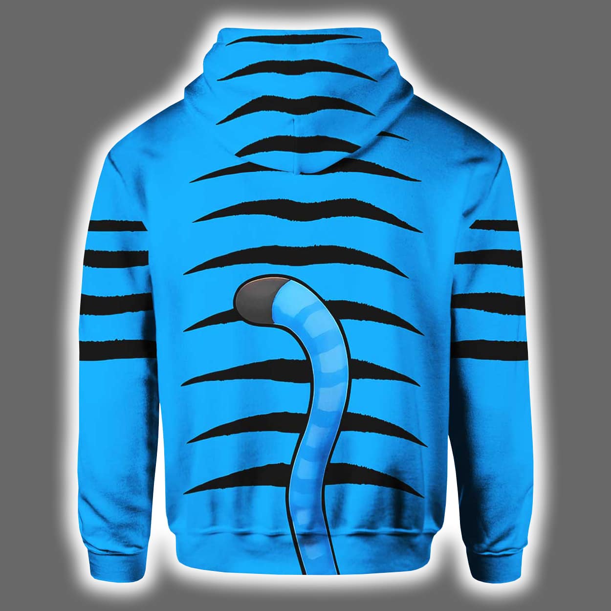 Inspired by the untamed spirit of a blue tiger—mythical, rare, and unapologetically unique—this design celebrates individuality and imagination. The playful tail and fierce stripes aren’t just costume elements; they’re a nod to those who dare to stand out. It’s cosplay meets streetwear, designed for thinkers who color outside the lines and walk their own path.