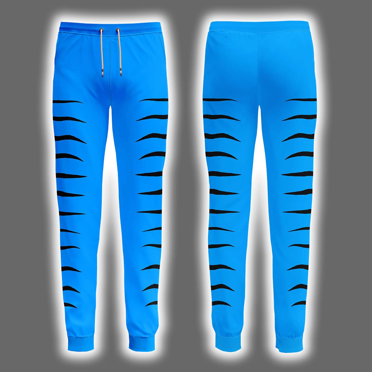 Step into the spotlight with this set—a head-turning ensemble that blends fierce fashion with cosplay charm. The hoodie features a mesmerizing gradient from light to deep blue, accented by abstract animal-like chest patterns and sleek black stripes on the sleeves. Flip it around and you’ll find a whimsical tiger tail stitched into the back, paired with bold black stripes across the hood and shoulders. The joggers complete the look with matching claw-like side stripes and a tapered fit that screams agility and attitude. Whether you’re prowling the streets or pouncing into a party, this set is your ultimate transformation piece.