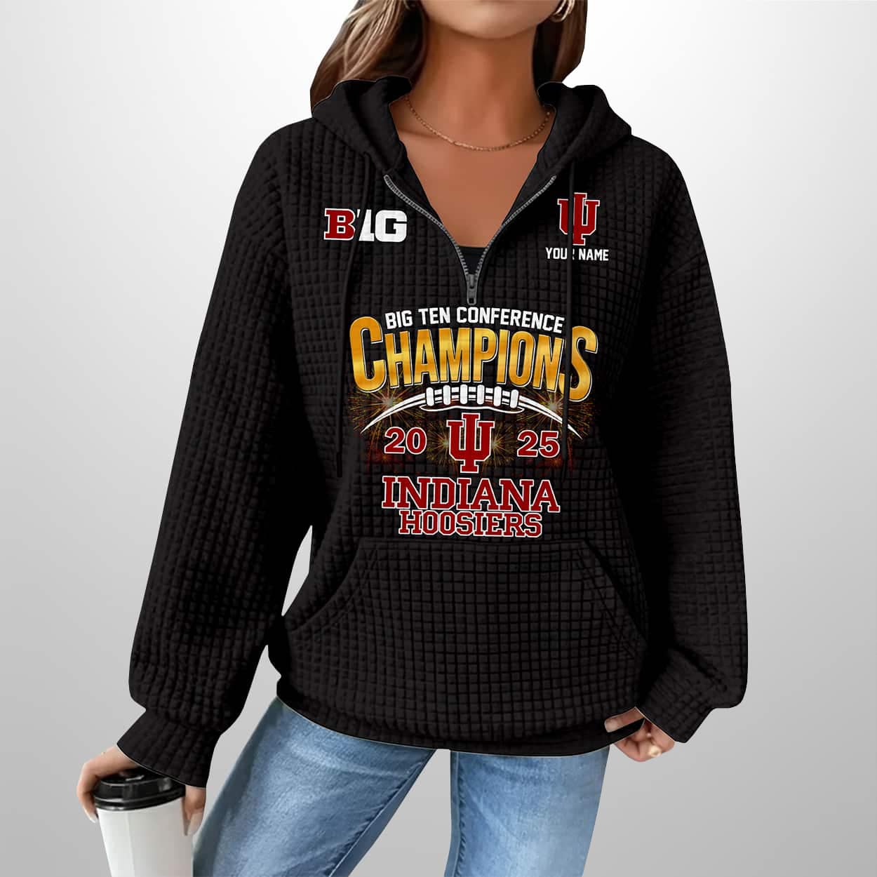 2025 Indiana Football Big Ten Champions Waffle Zip Hoodie