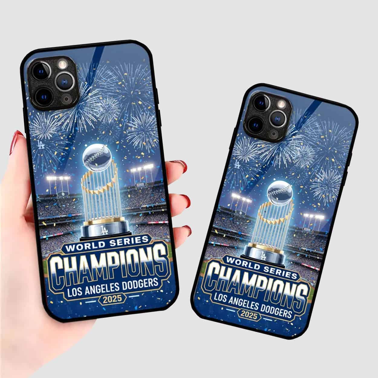 Celebrate the Dodgers’ 2025 World Series triumph with this 2025 LA Dodgers World Series Champions Phone Case, featuring fireworks, stadium lights, and the iconic championship trophy. A must-have for fans who love flair and victory.