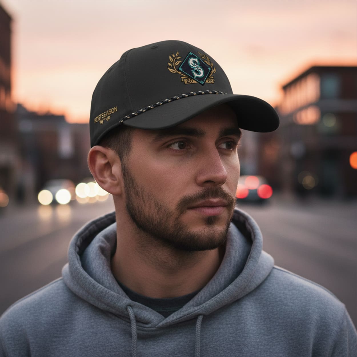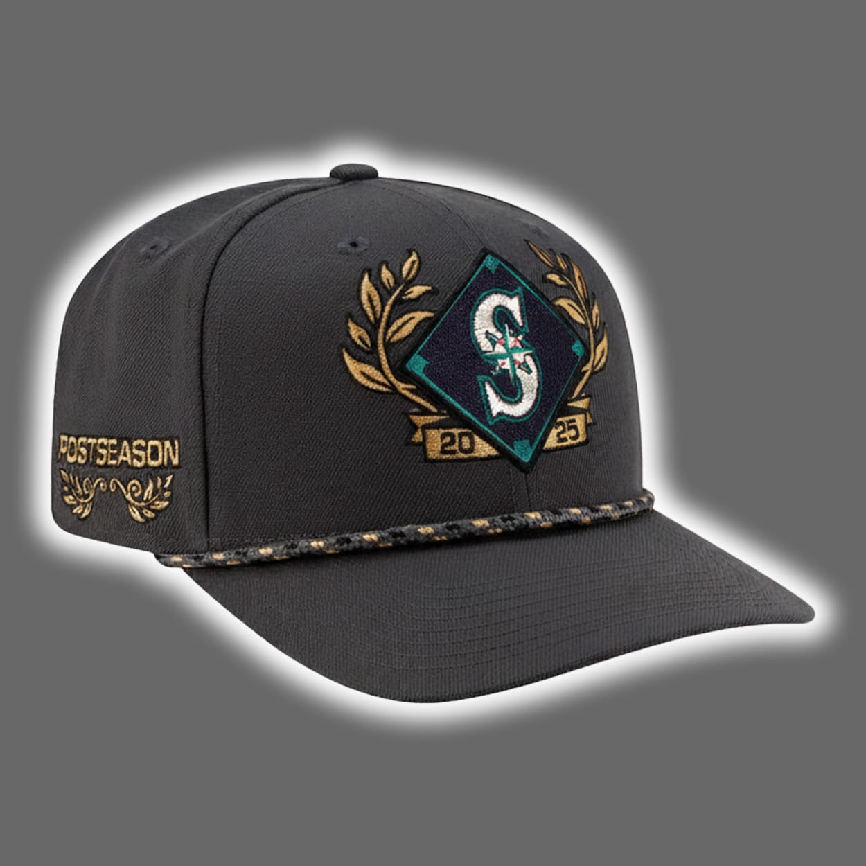 Step into postseason glory with this hat—a head-turning tribute to Seattle’s electrifying run. Front and center, the Mariners’ iconic compass logo is framed by golden laurel branches, symbolizing triumph and tradition. Beneath it, the year “2025” anchors the design, marking a season to remember. The brim adds a rugged twist with a camouflage-patterned trim, perfect for fans who battle through every inning. On the side, “POSTSEASON” is embroidered in bold gold, flanked by more laurel flourishes that whisper, “We didn’t just show up—we showed out.”