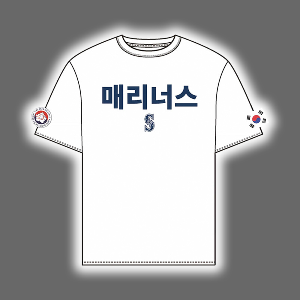 Step into the stadium with pride and personality in the 2025 Mariners Korean Heritage Night Shirt Giveaway. This tee is a visual home run, featuring the Korean word “매리너스” (Mariners) boldly printed across the chest, just above the iconic Seattle Mariners “S” logo. The left sleeve sports a vibrant circular patch with Korean characters and a stylized red baseball, while the right sleeve proudly displays the South Korean flag. It’s not just a shirt—it’s a celebration of identity, fandom, and international flair.