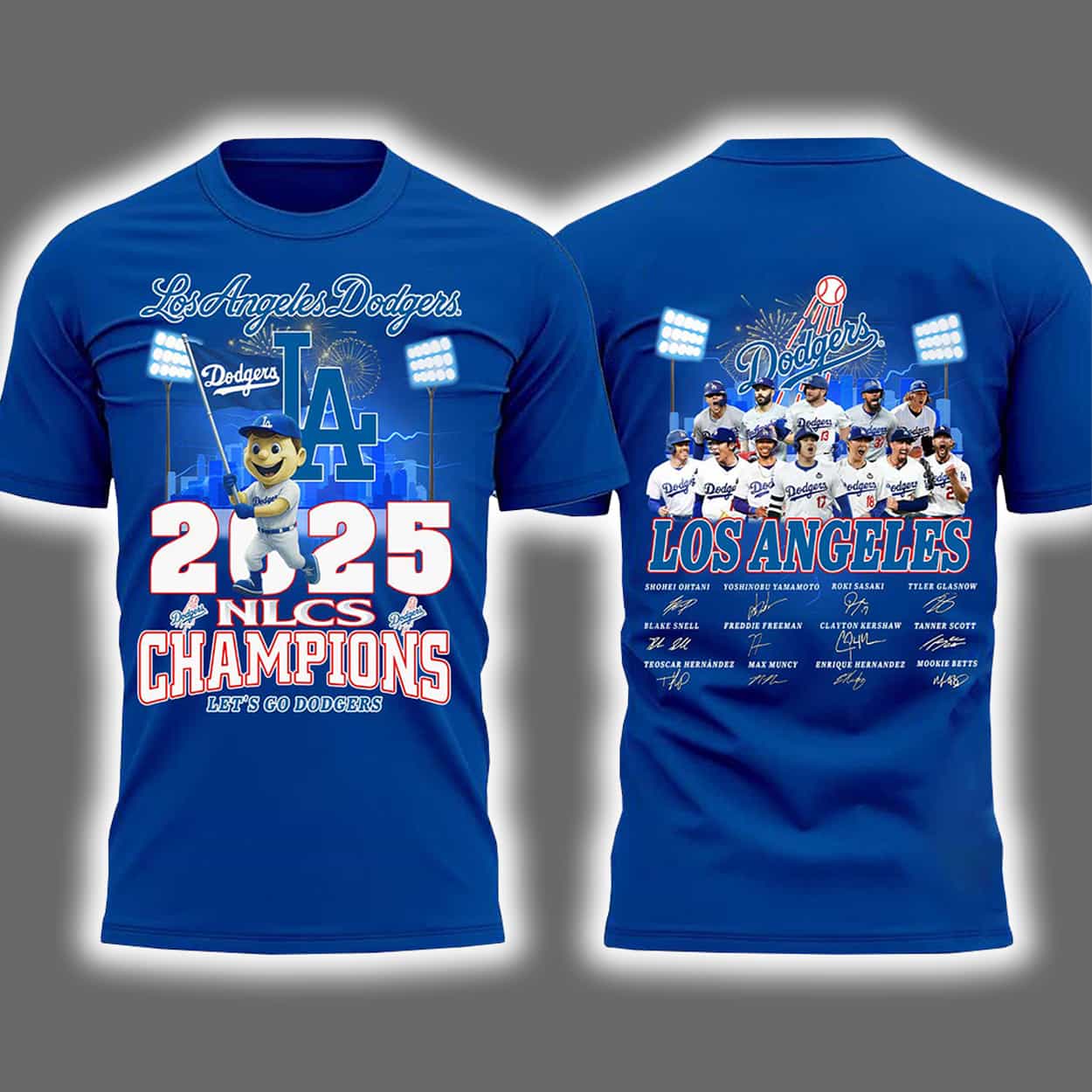 Ready to rep the champs? Grab your 2025 NLCS Champions Let’s Go Dodgers Two-Sided Shirt and let the world know: victory looks good on you. Let’s go Dodgers!