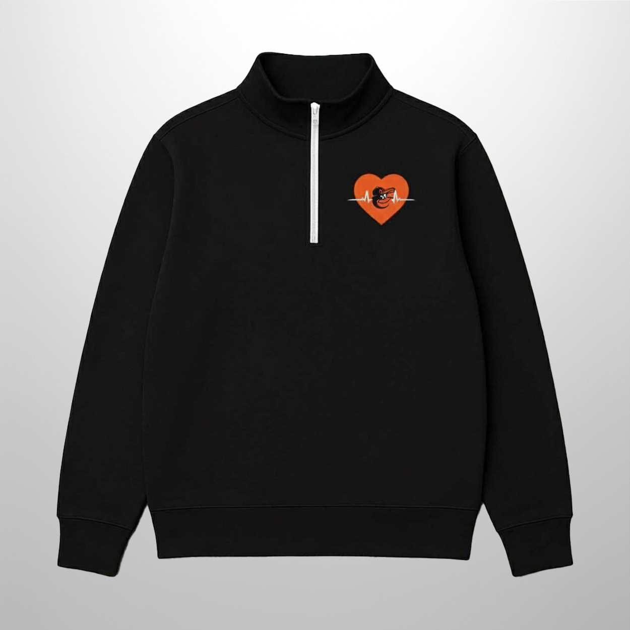 The design of this quarter zip is more than just a pretty logo—it’s a home run of symbolism! The stethoscope heart is a playful “pulse check” on our gratitude for healthcare workers, while the Orioles logo inside beats with team spirit. But there’s a sharper edge: the bold orange accents might just be a subtle dig at political figures who’ve fumbled healthcare policies—think of it as a sartorial side-eye to those who can’t seem to “catch” the needs of the people. This pullover isn’t just for fans; it’s for thinkers who aren’t afraid to wear their values on their sleeve.