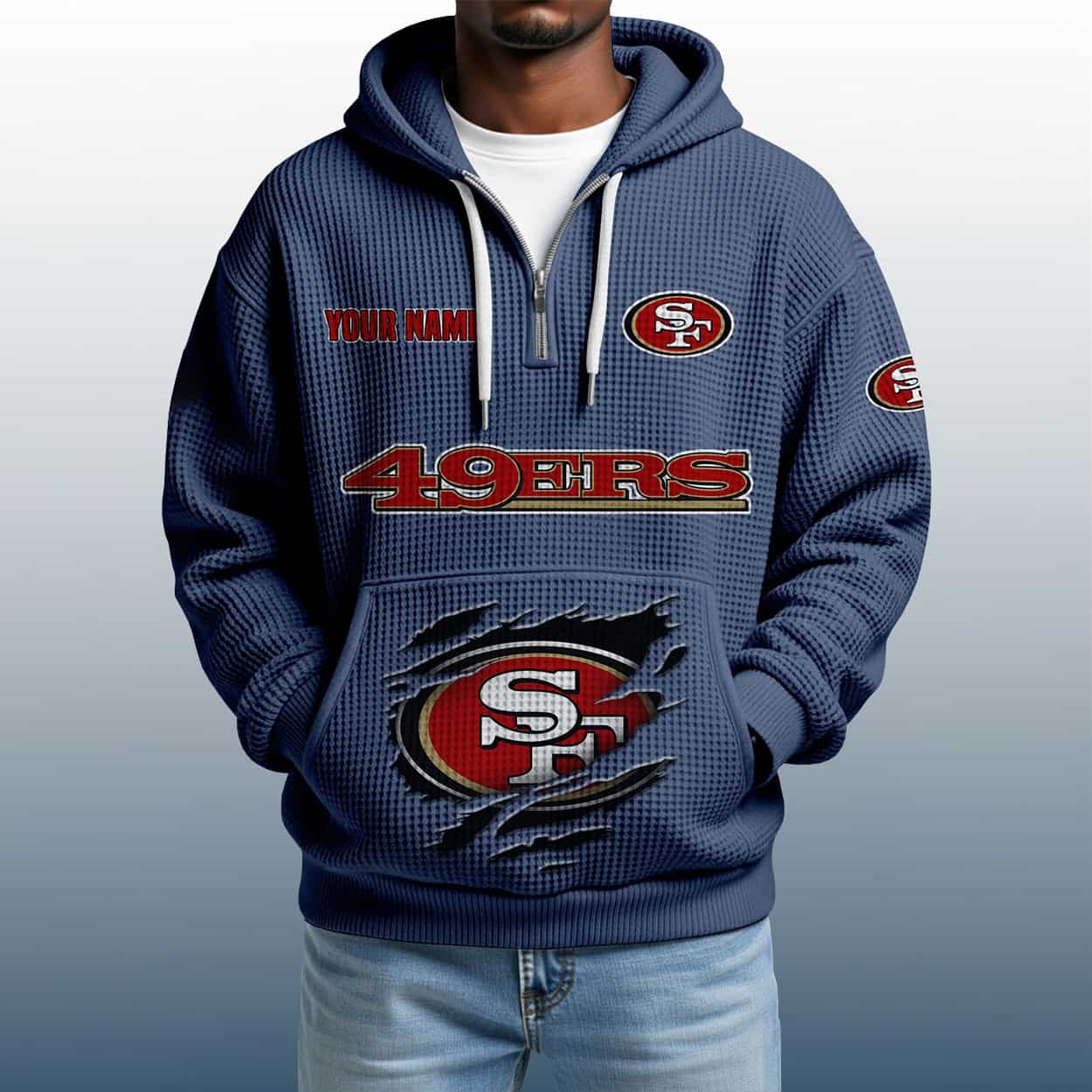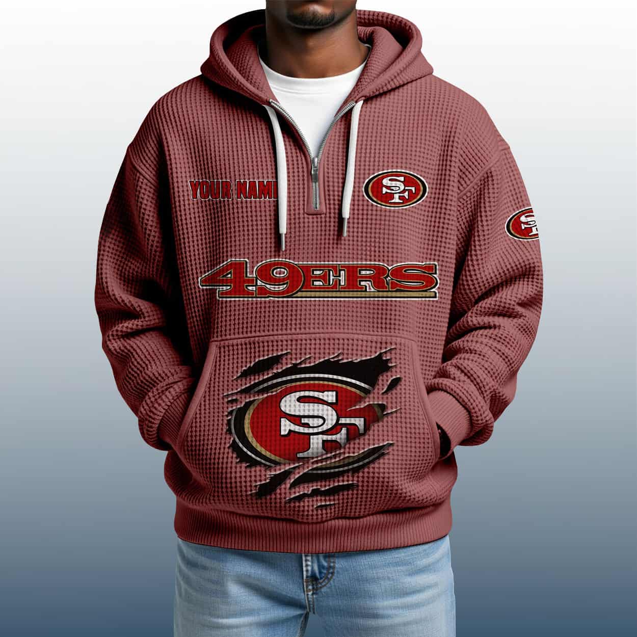 Make your mark with the 2025 Personalized 49ers Quarter Zip Waffle Hoodie—a bold blend of legacy, texture, and custom flair for fans who lead the charge.