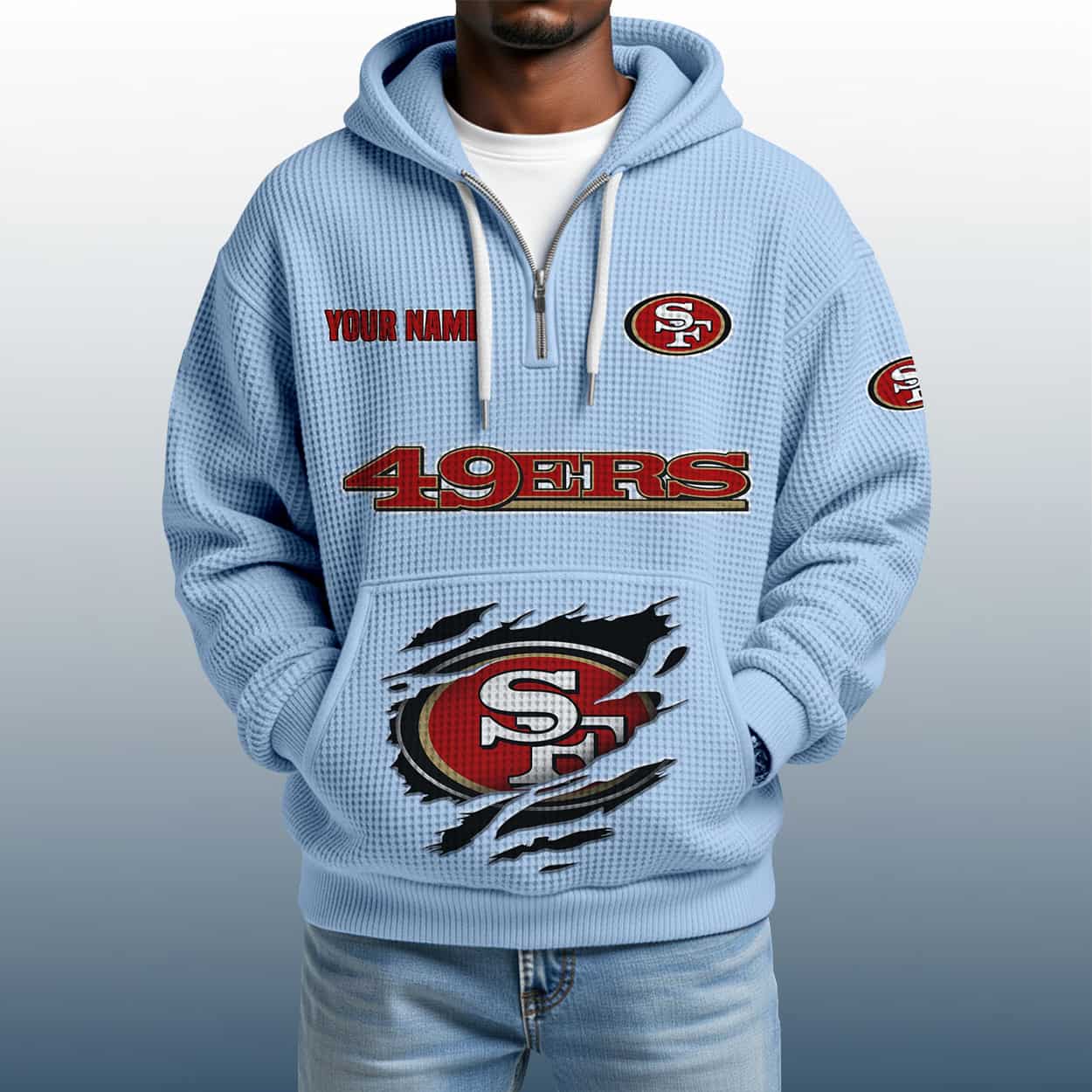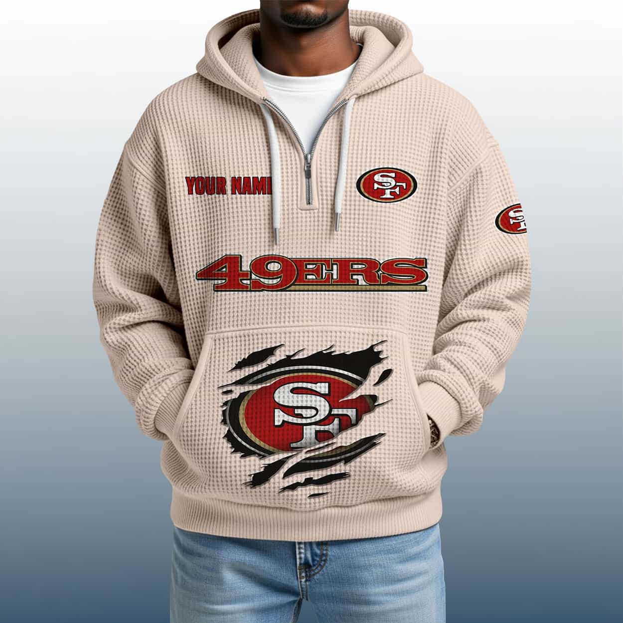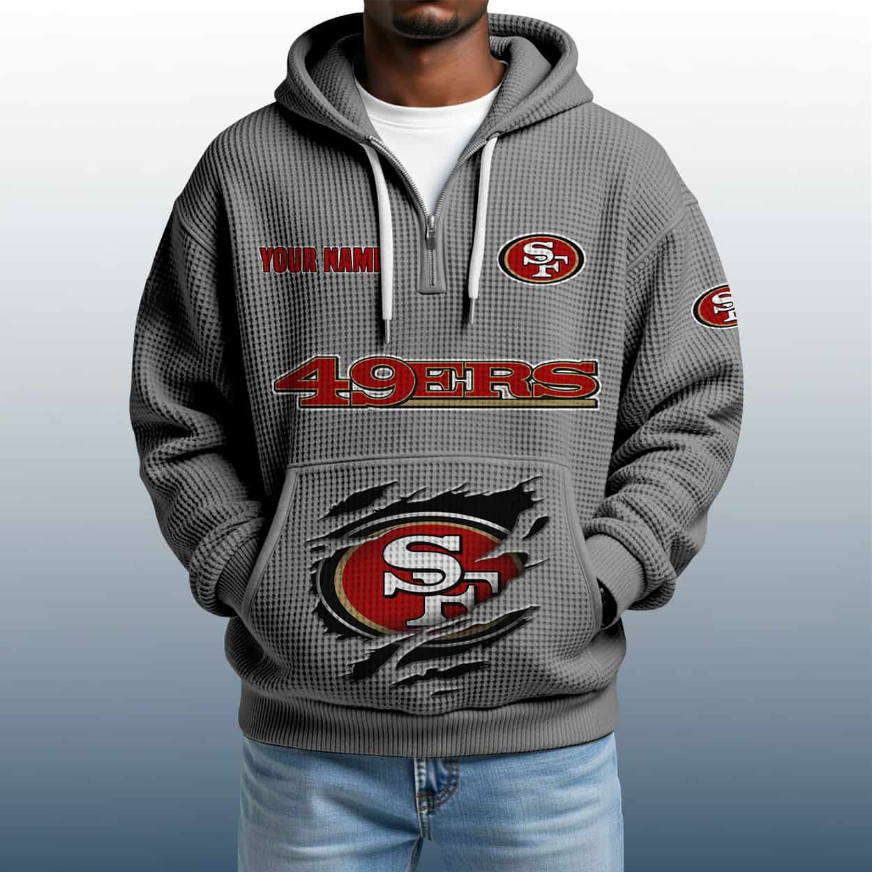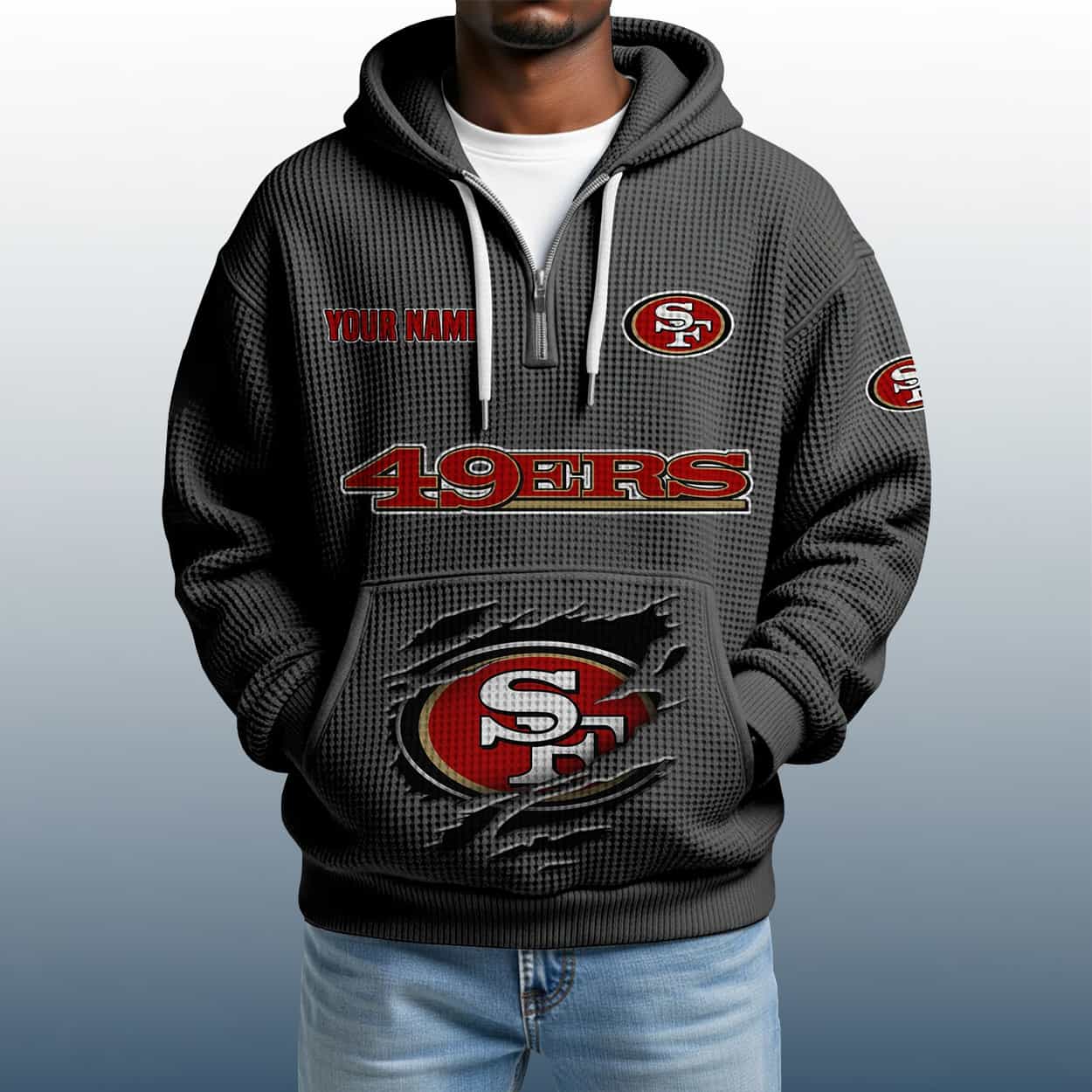 2025 Personalized 49ers Quarter Zip Waffle Hoodie