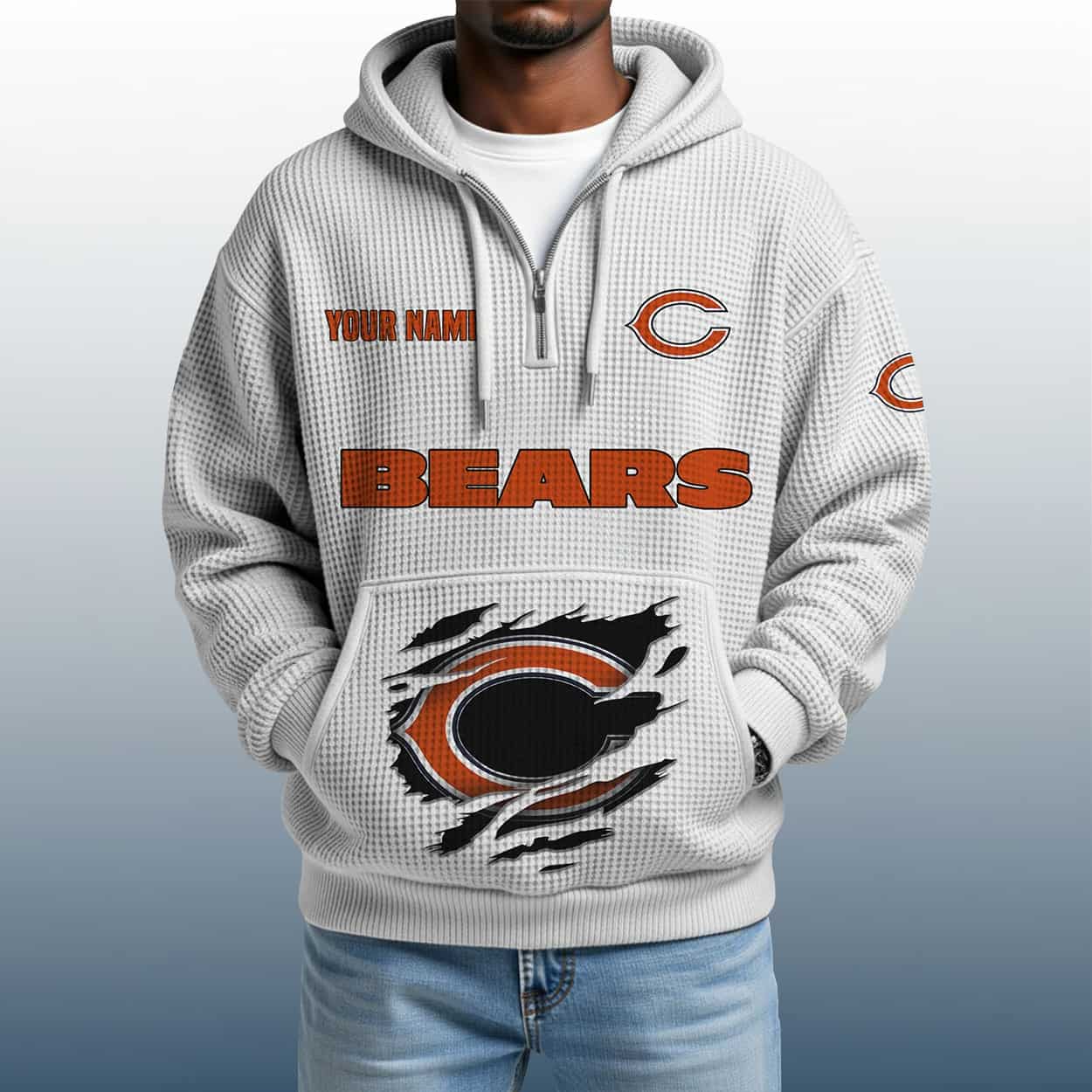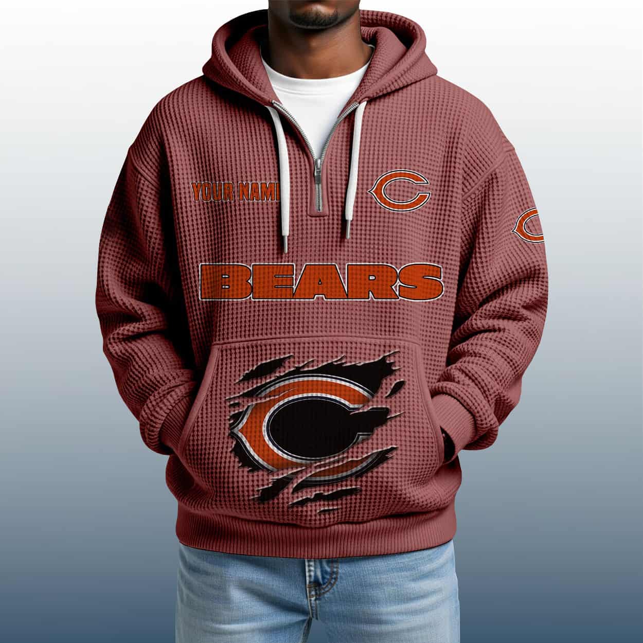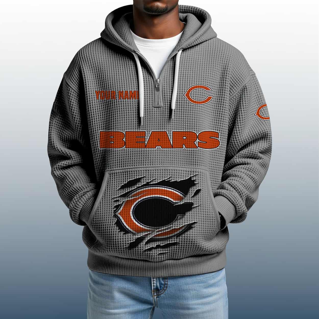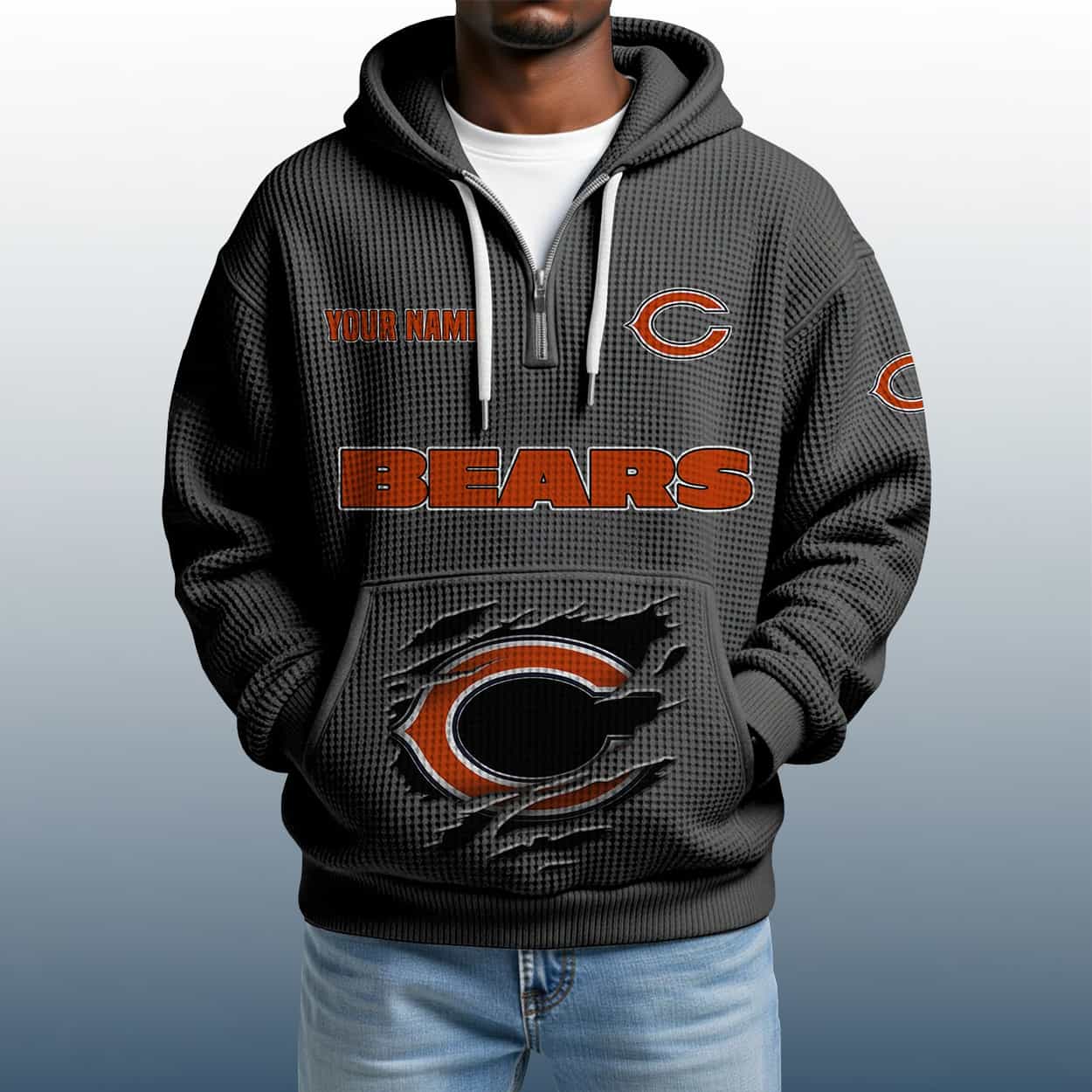 Roar in Style: 2025 Personalized Bears Quarter Zip Waffle Hoodie for True Chicago Grit