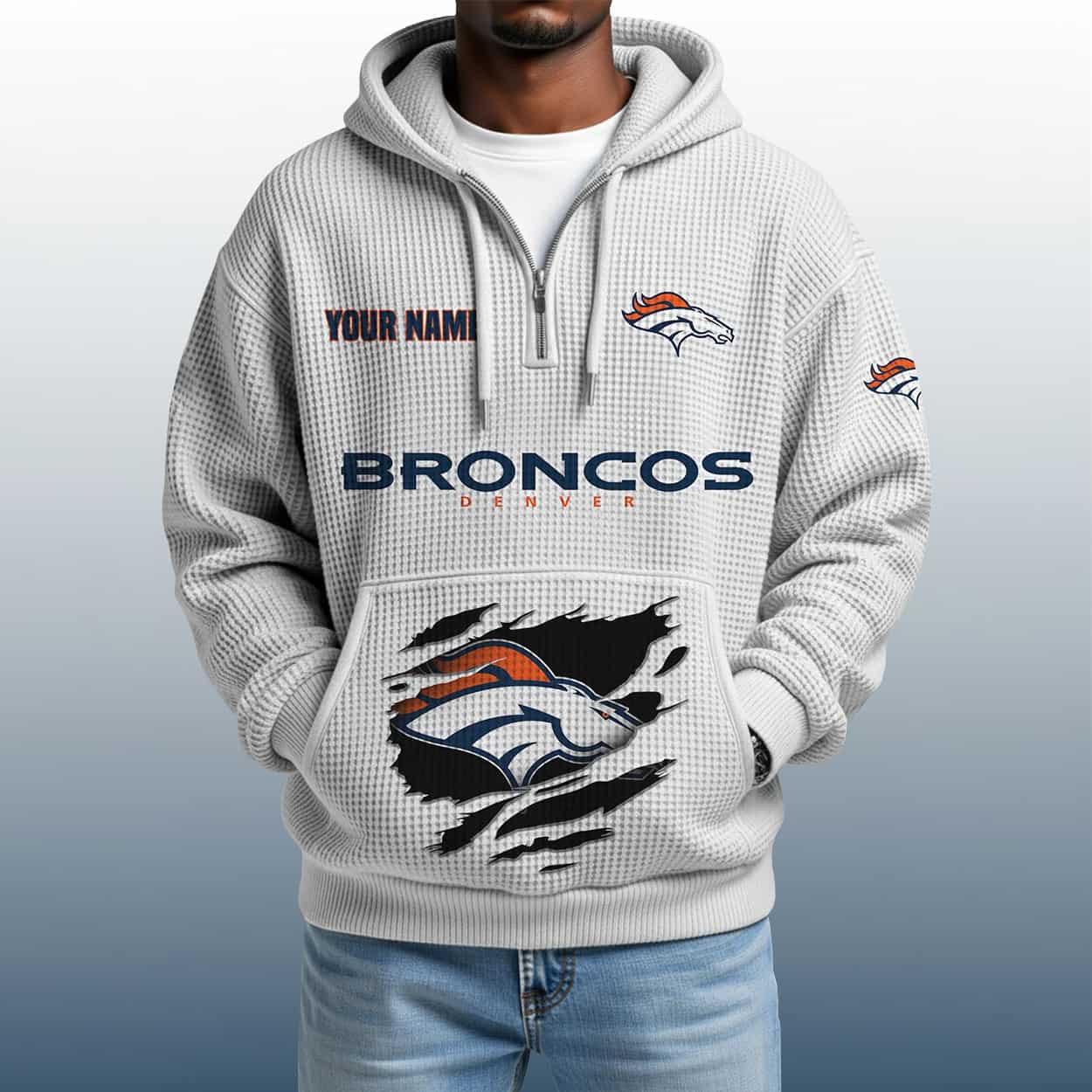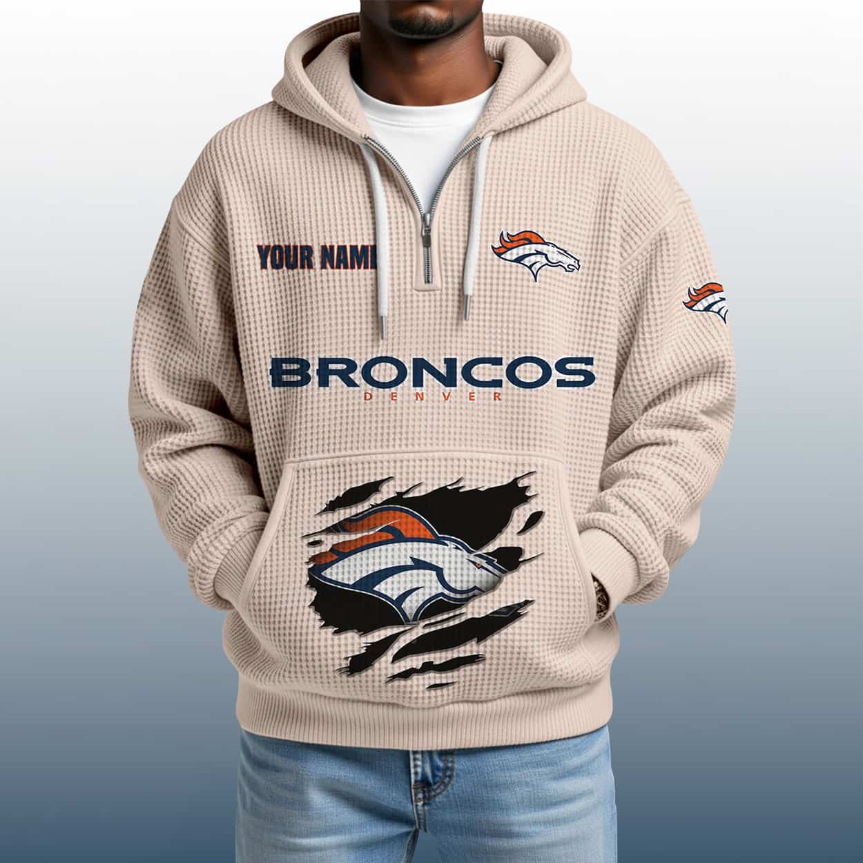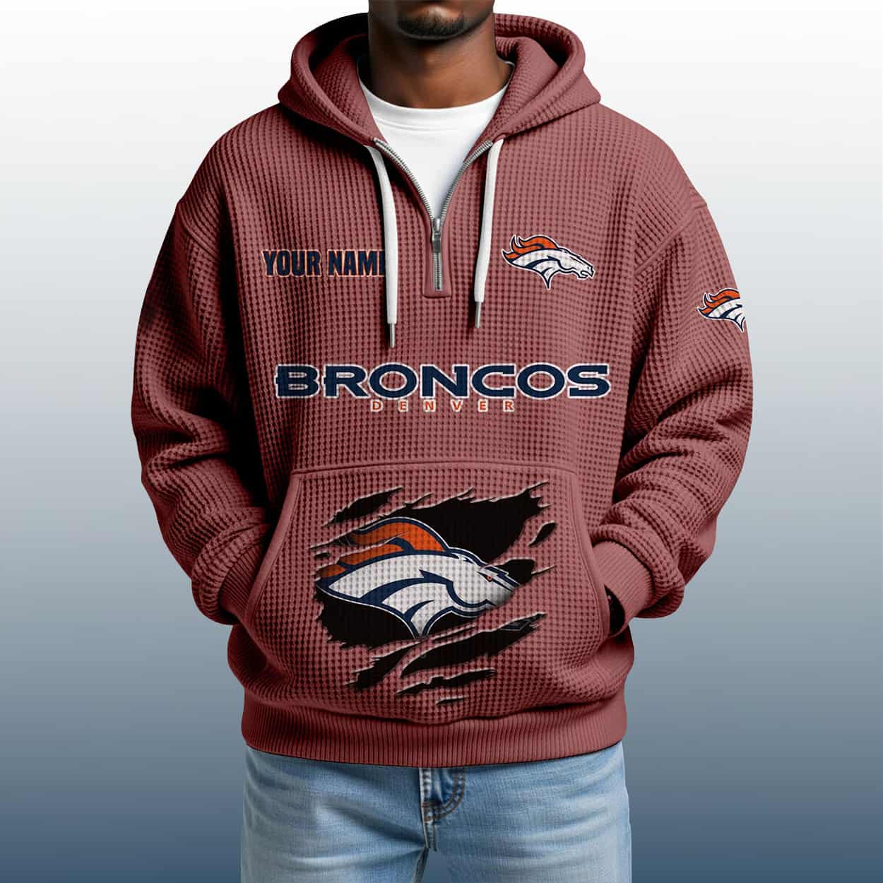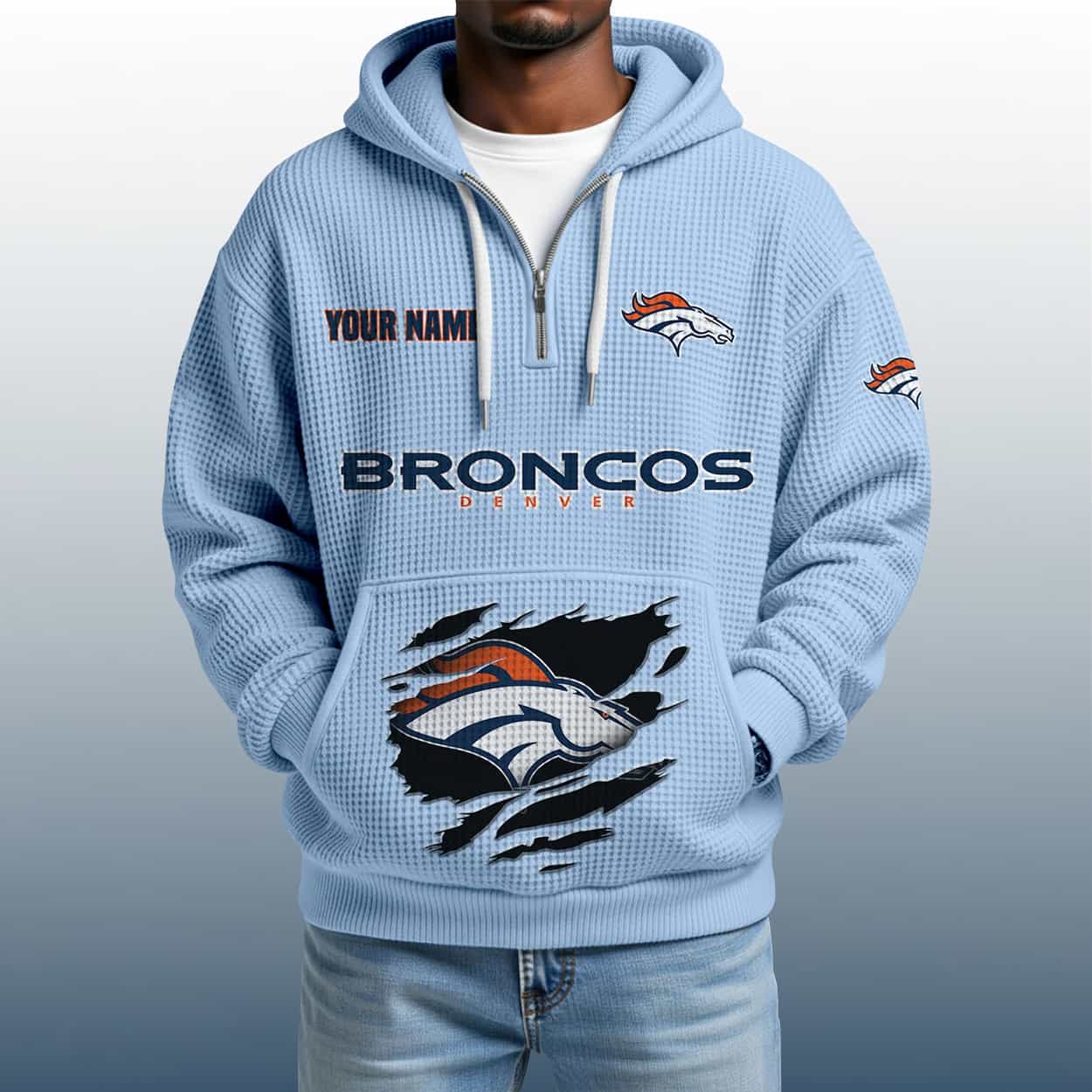 Mile High Style: The 2025 Personalized Broncos Quarter Zip Waffle Hoodie That’s All You