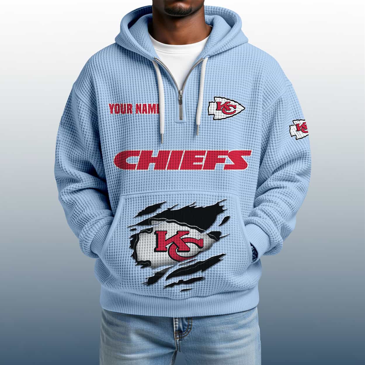 2025 Personalized Chiefs Quarter Zip Waffle Hoodie