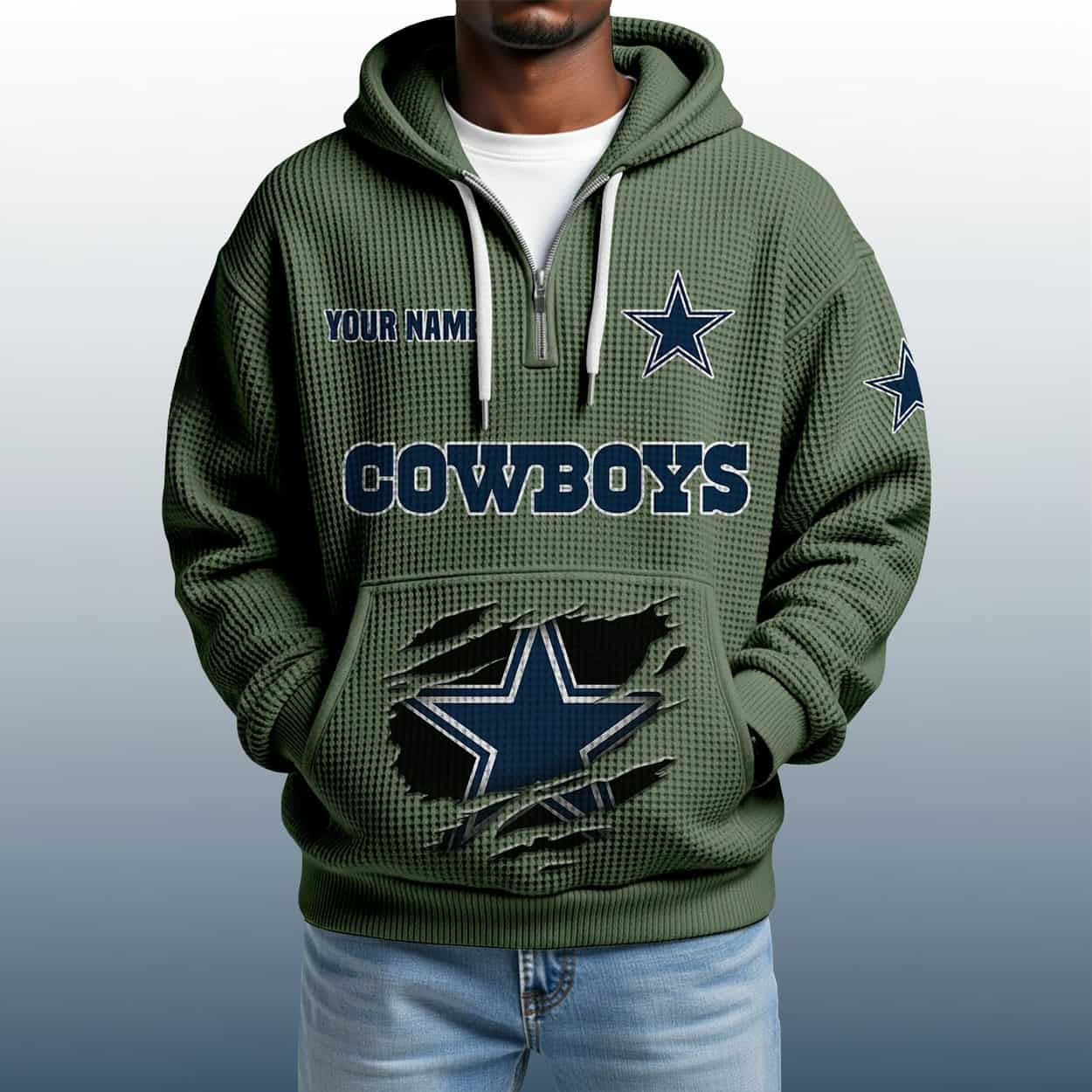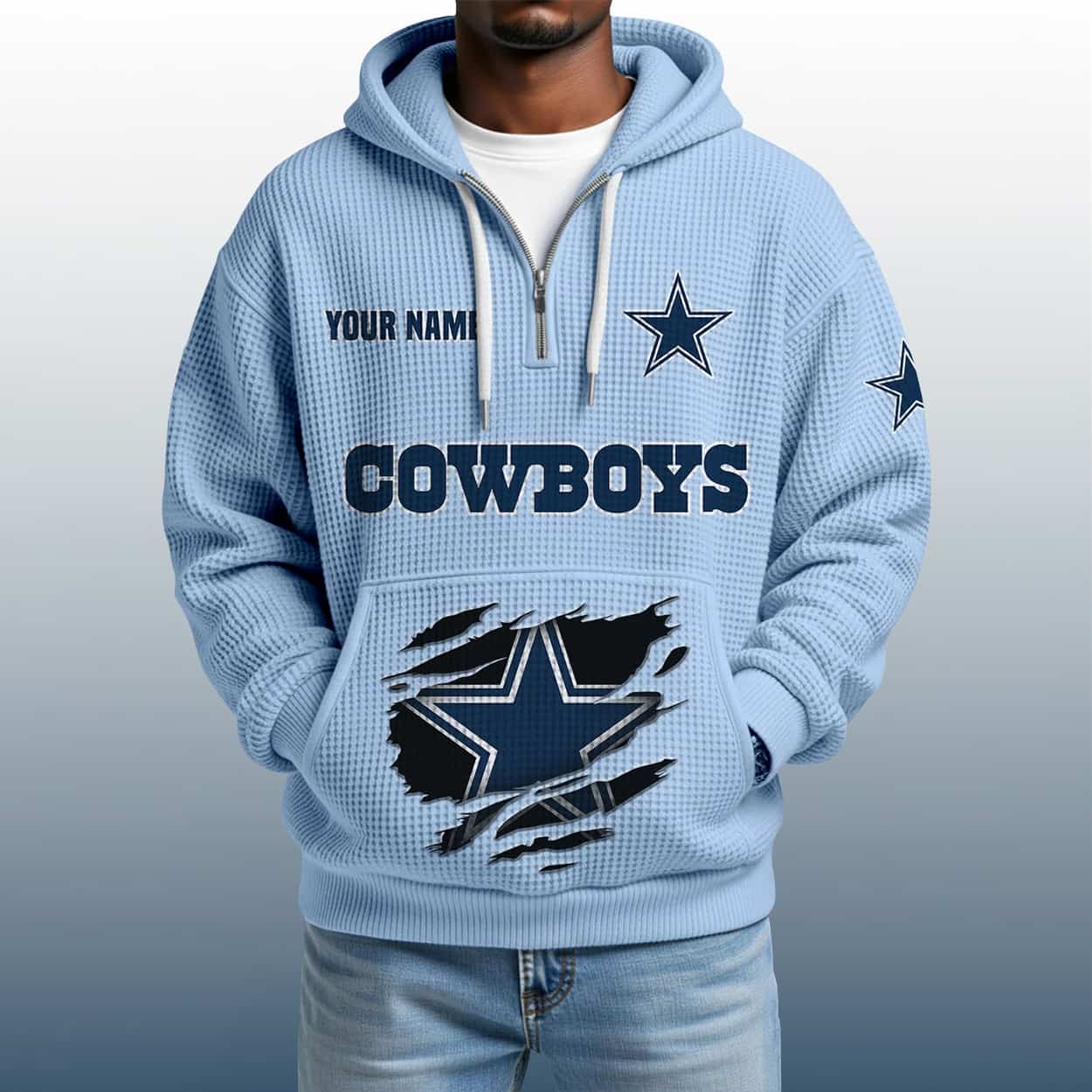 Show off your star power with the 2025 Personalized Cowboys Quarter Zip Waffle Hoodie—custom flair meets classic Dallas pride in this bold fan essential.