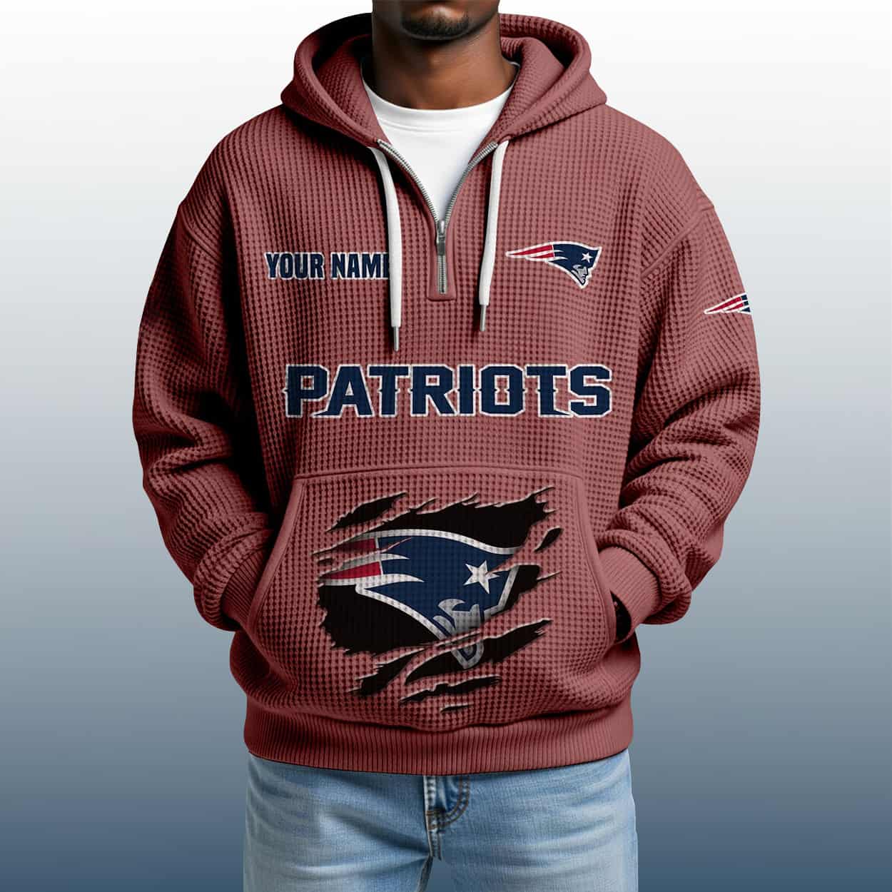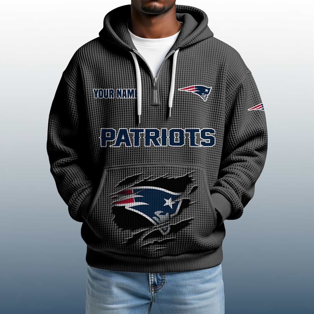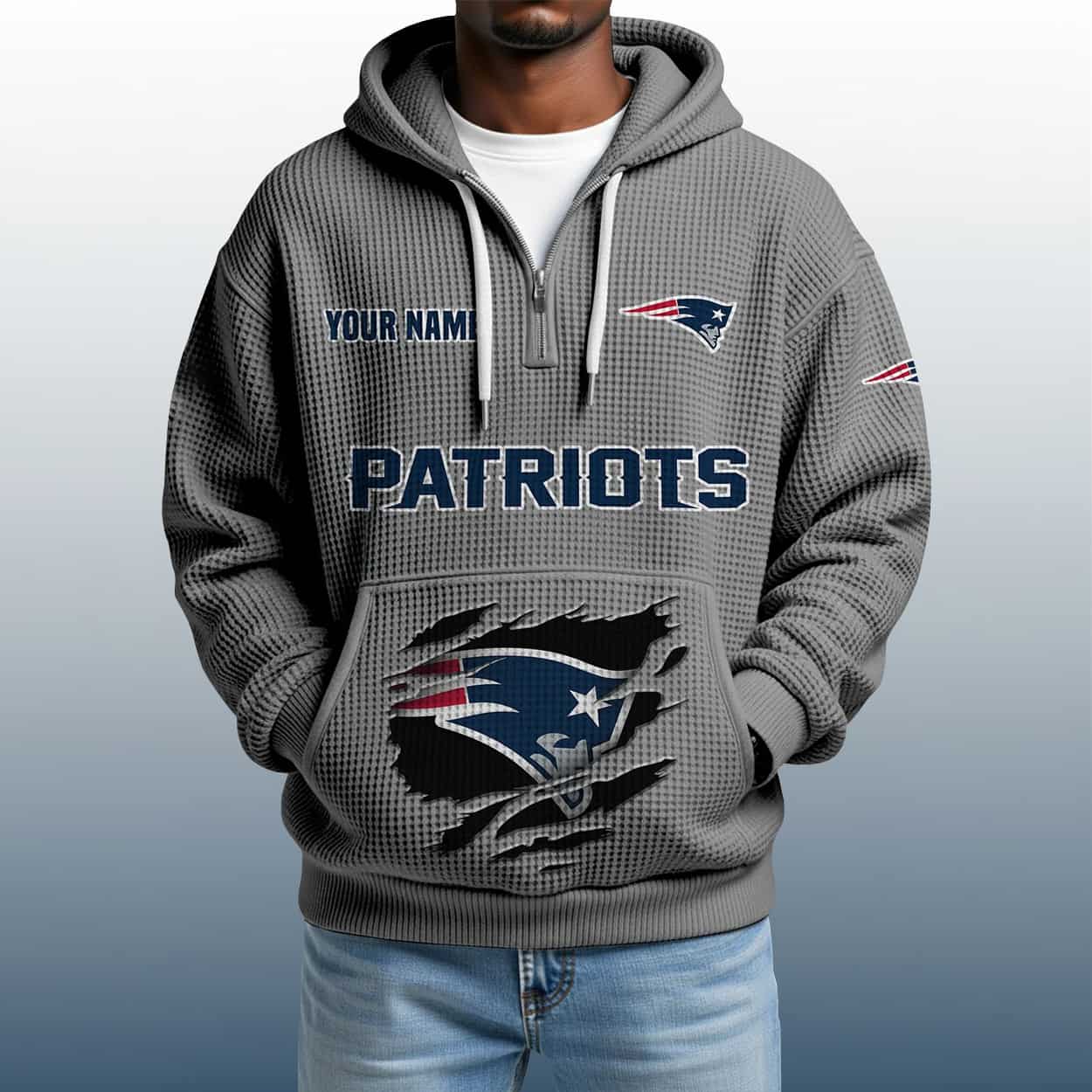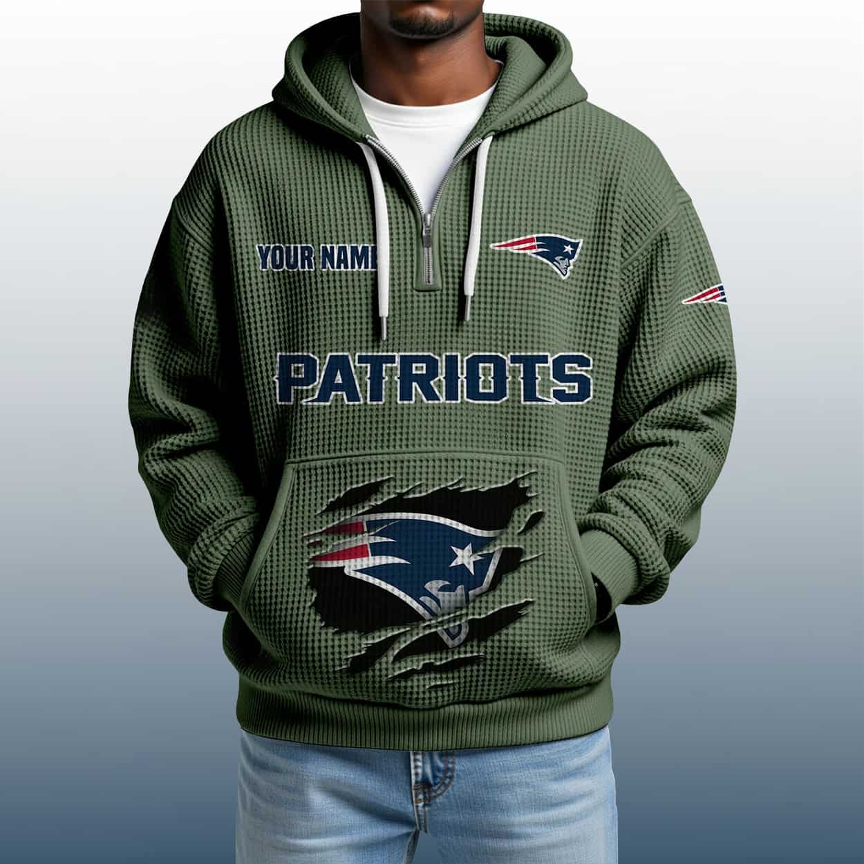 Lead the Charge in the 2025 Personalized Patriots Quarter Zip Waffle Hoodie