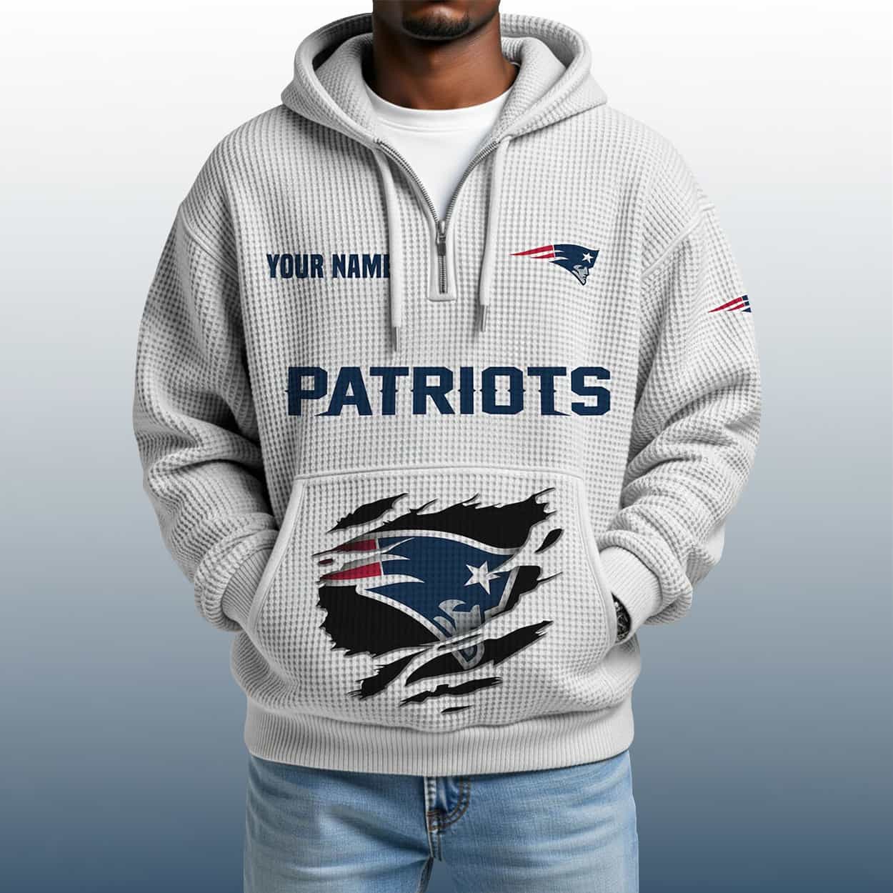2025 Personalized Patriots Quarter Zip Waffle Hoodie
