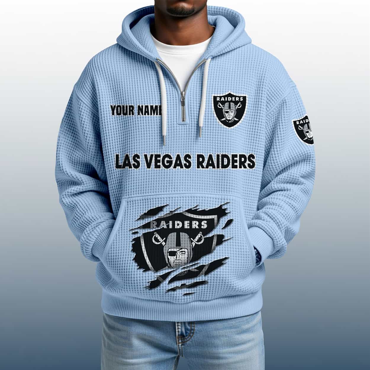 Unleash your Raider pride with the 2025 Personalized Raiders Quarter Zip Waffle Hoodie—customized for fans who play by their own rules.