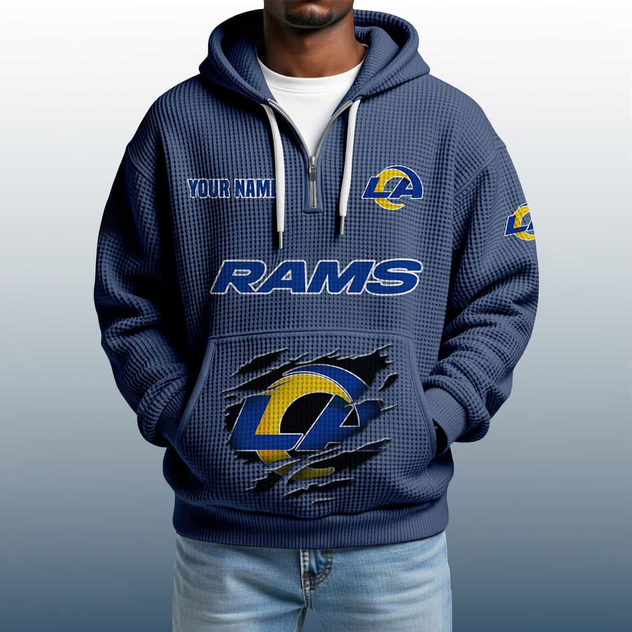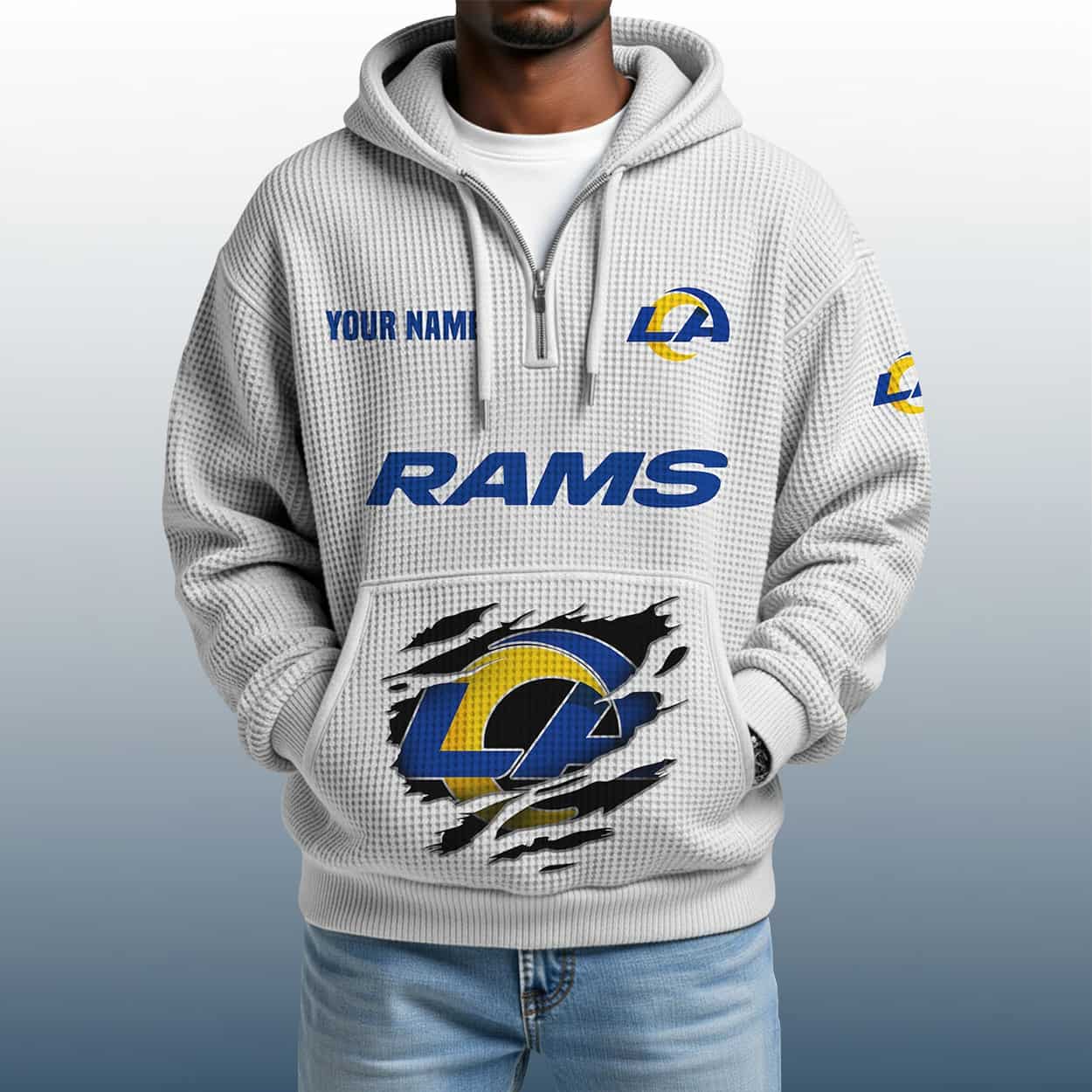 2025 Personalized Rams Quarter Zip Waffle Hoodie