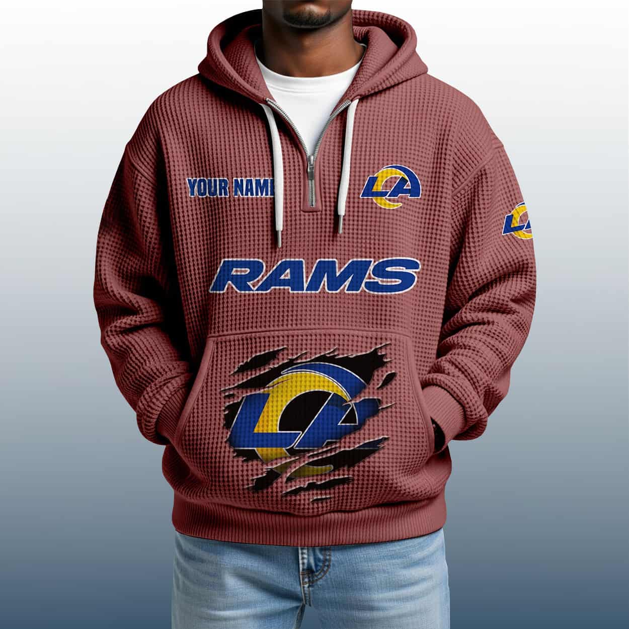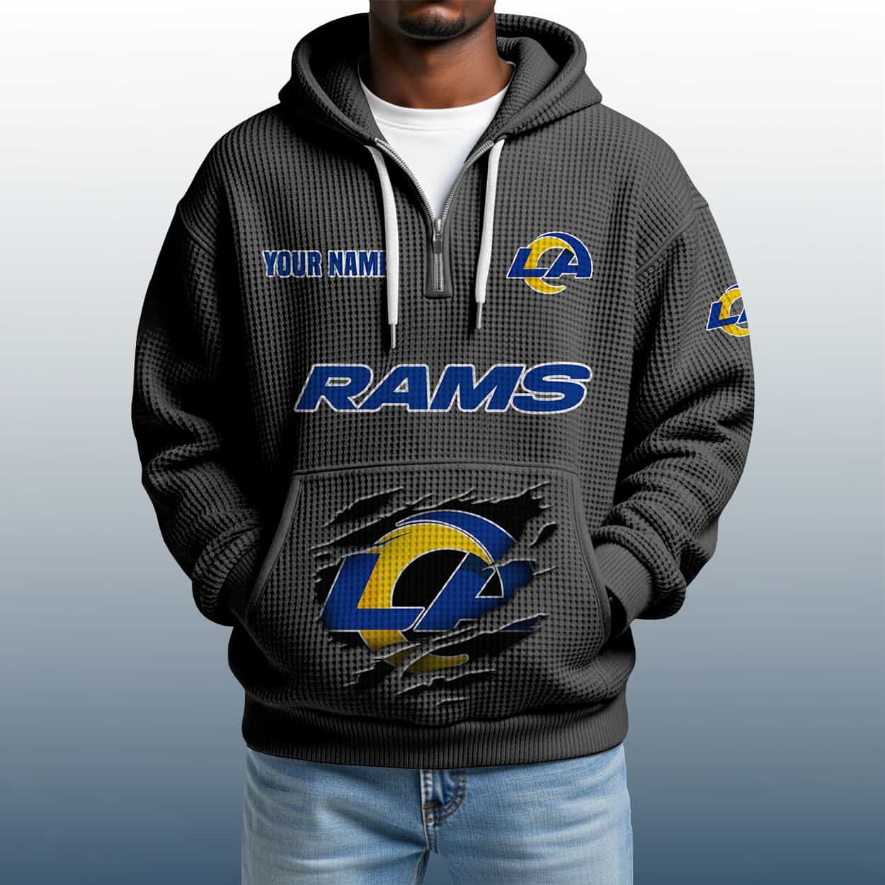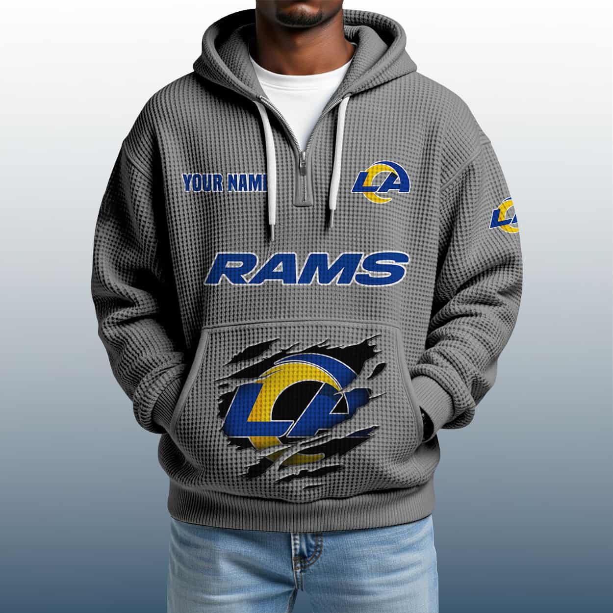 2025 Personalized Rams Quarter Zip Waffle Hoodie – Lead the Stampede in Custom Style