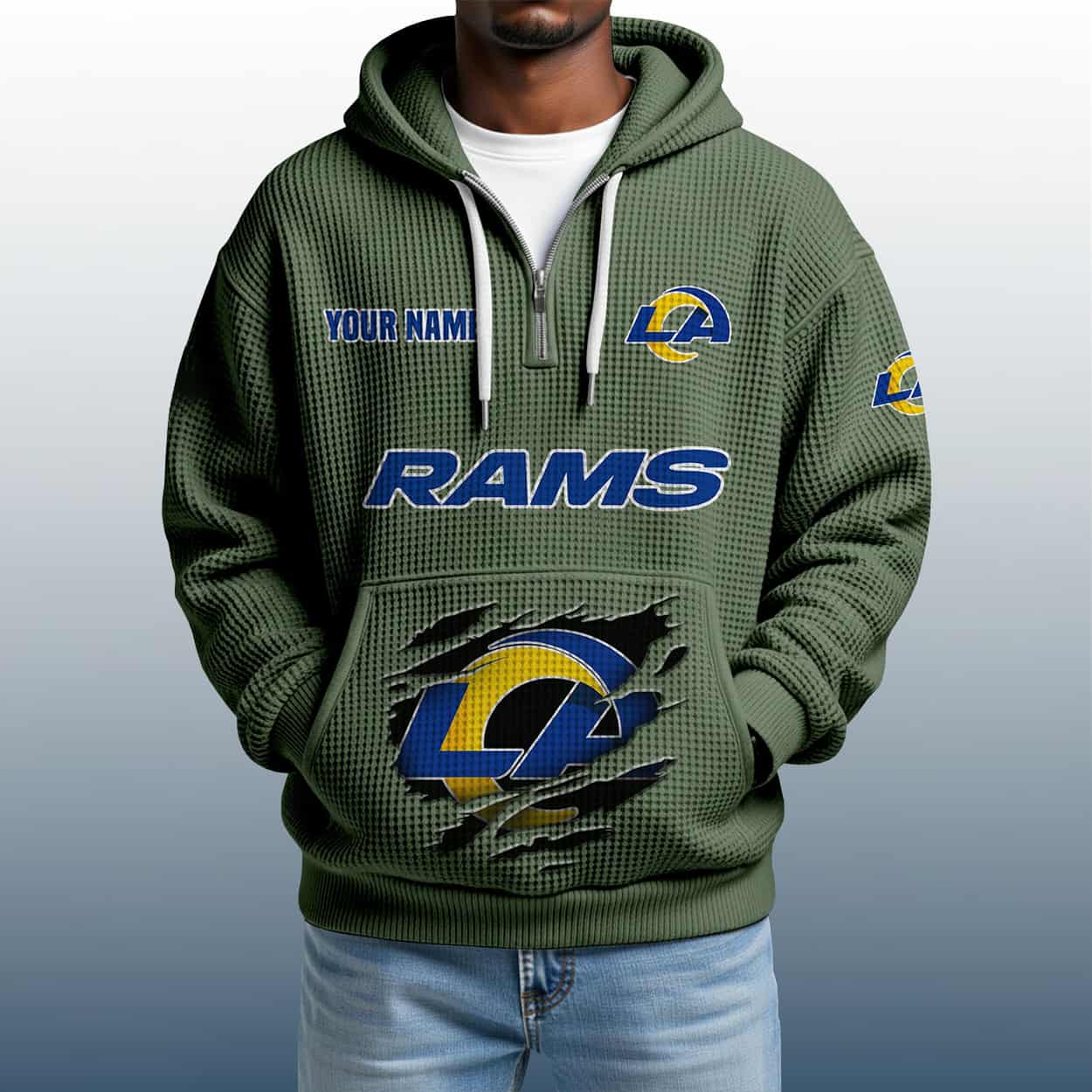 Ready to personalize your Rams pride? Customize your 2025 Personalized Rams Quarter Zip Waffle Hoodie now and let your name ride the wave of victory.