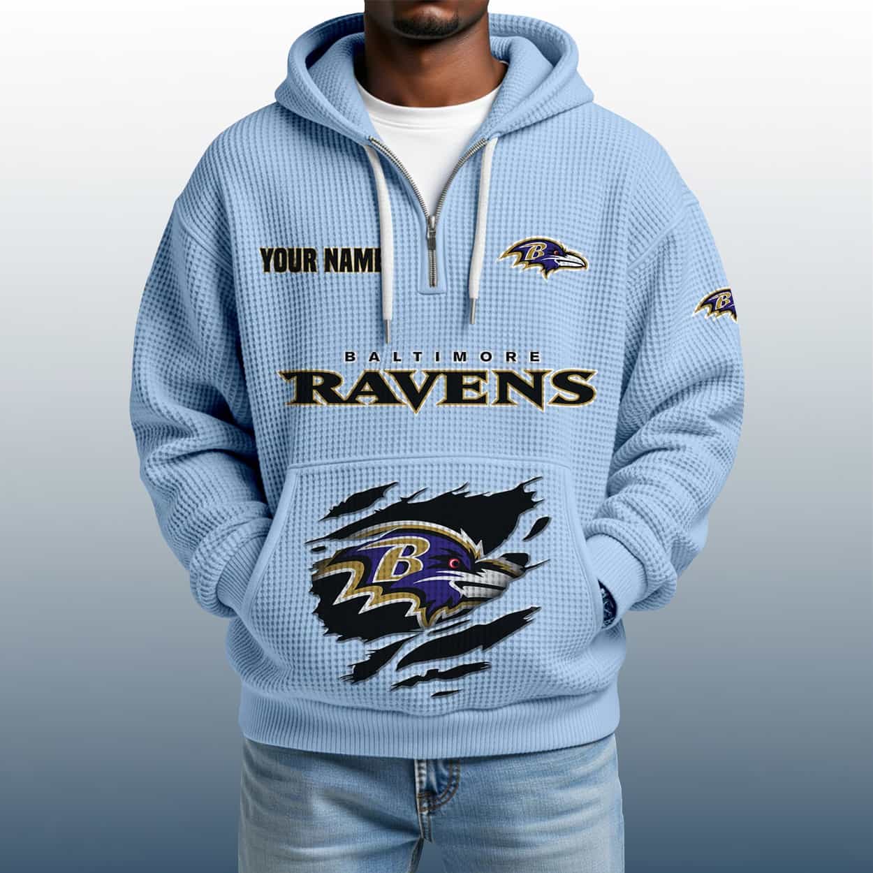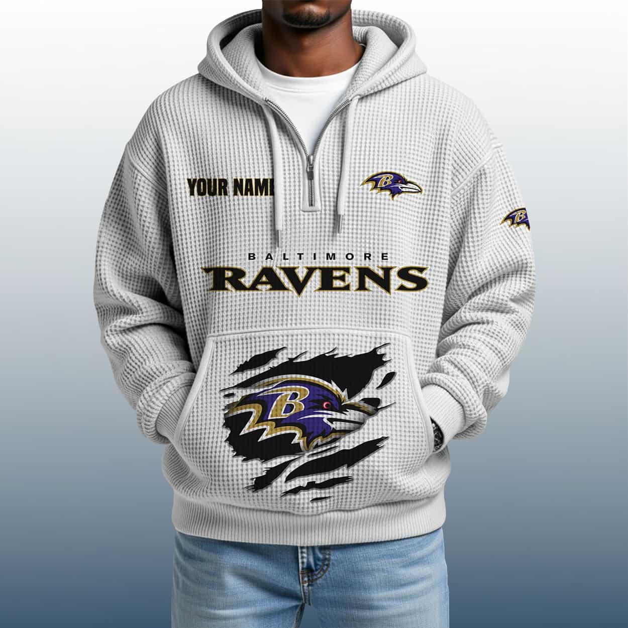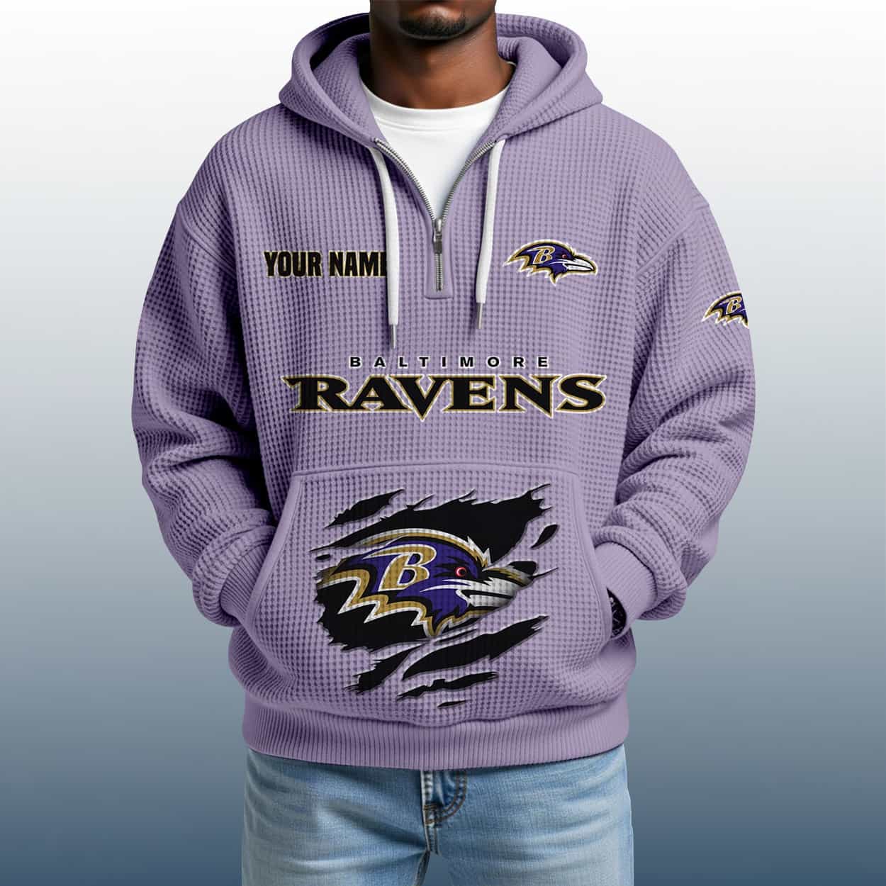 2025 Personalized Ravens Quarter Zip Waffle Hoodie