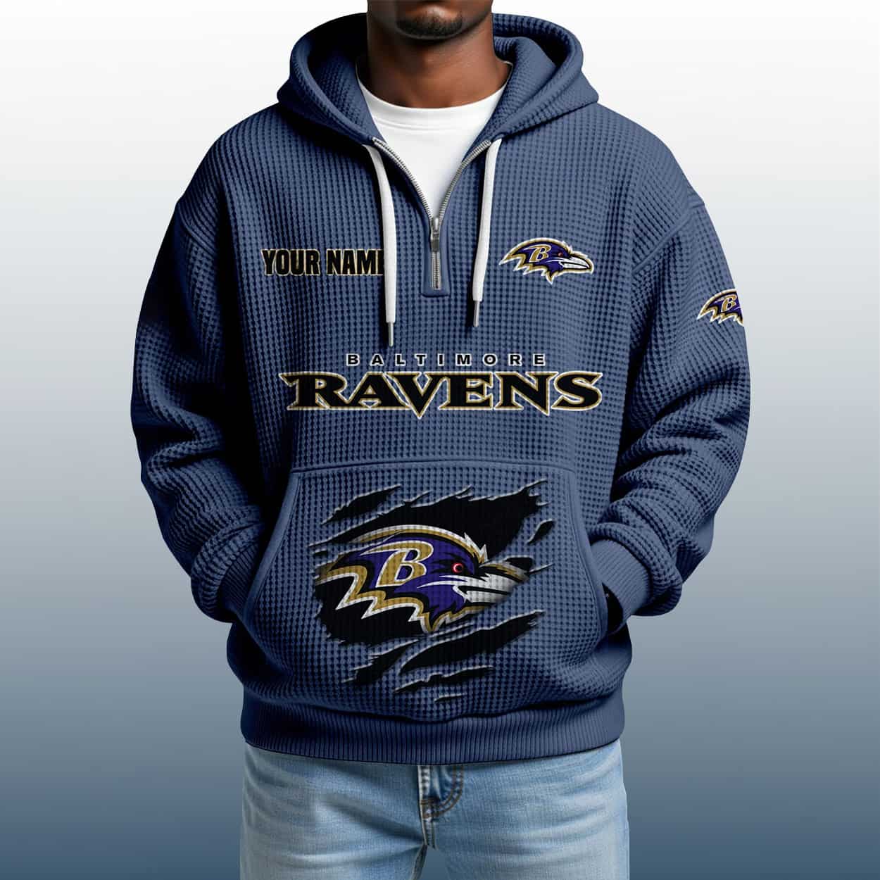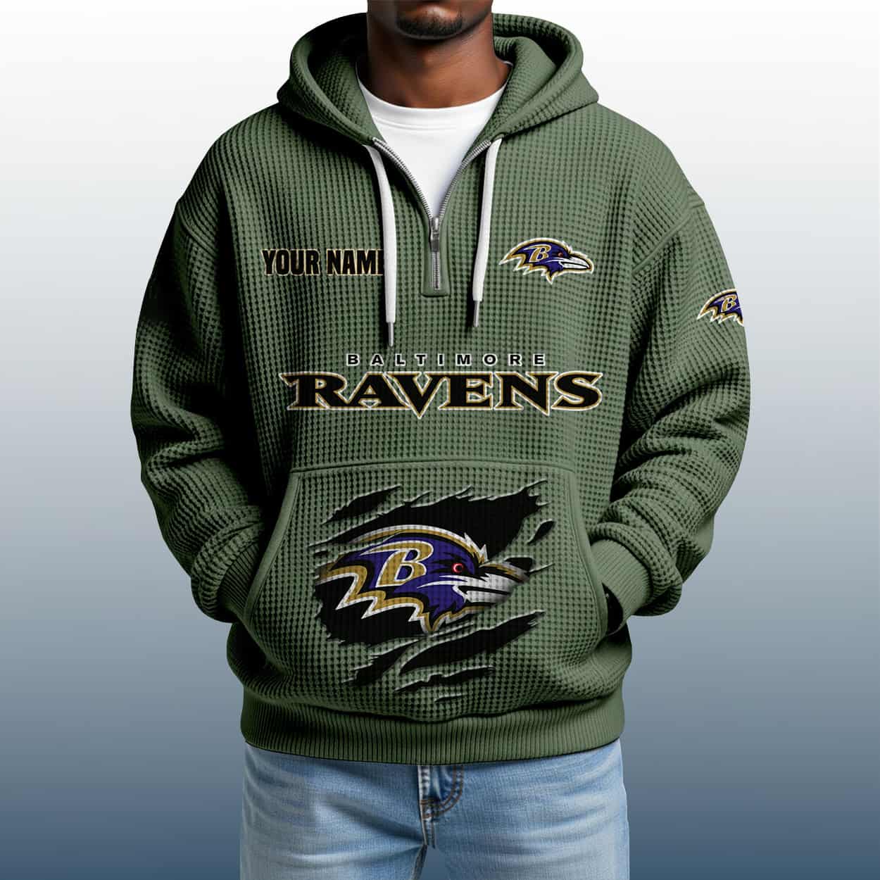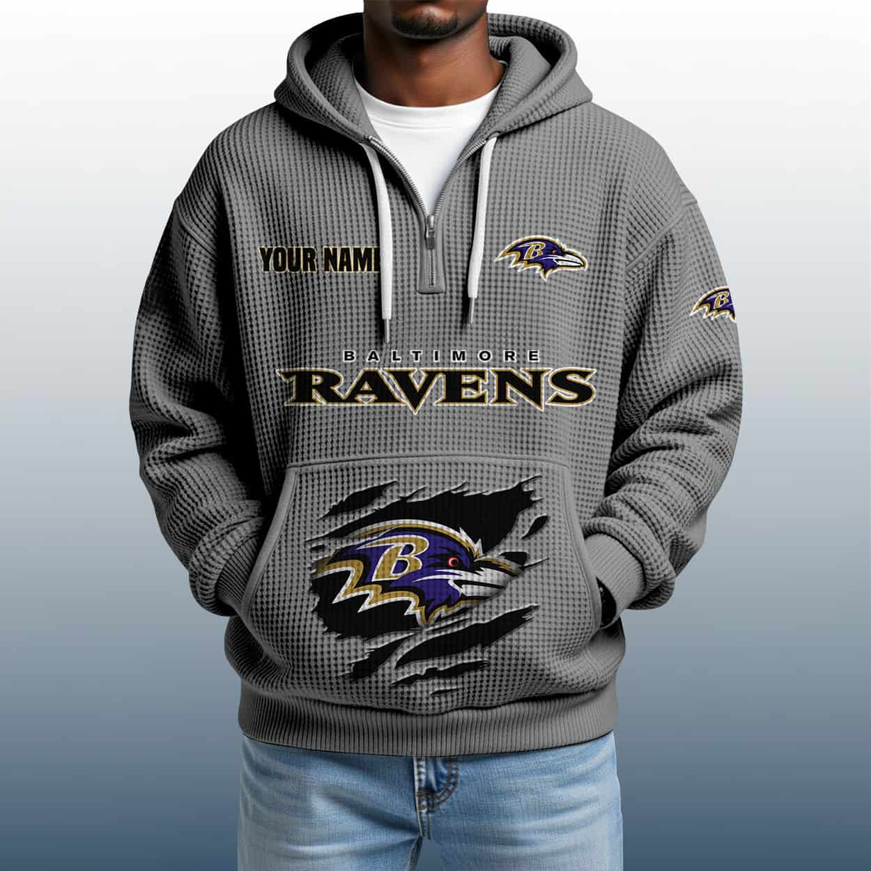 2025 Personalized Ravens Quarter Zip Waffle Hoodie