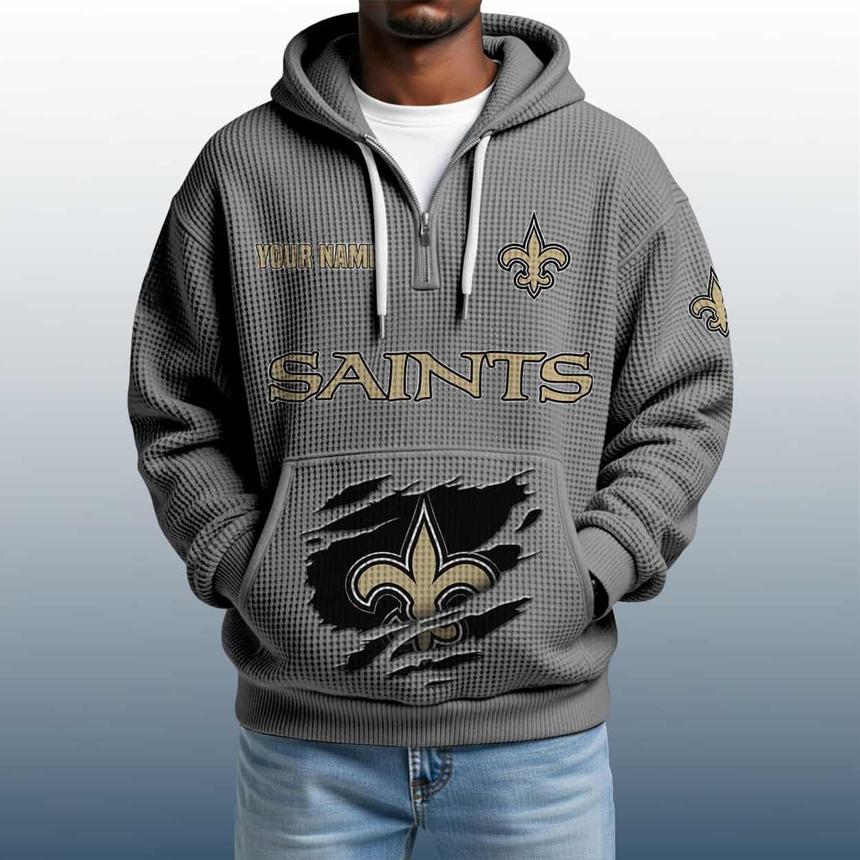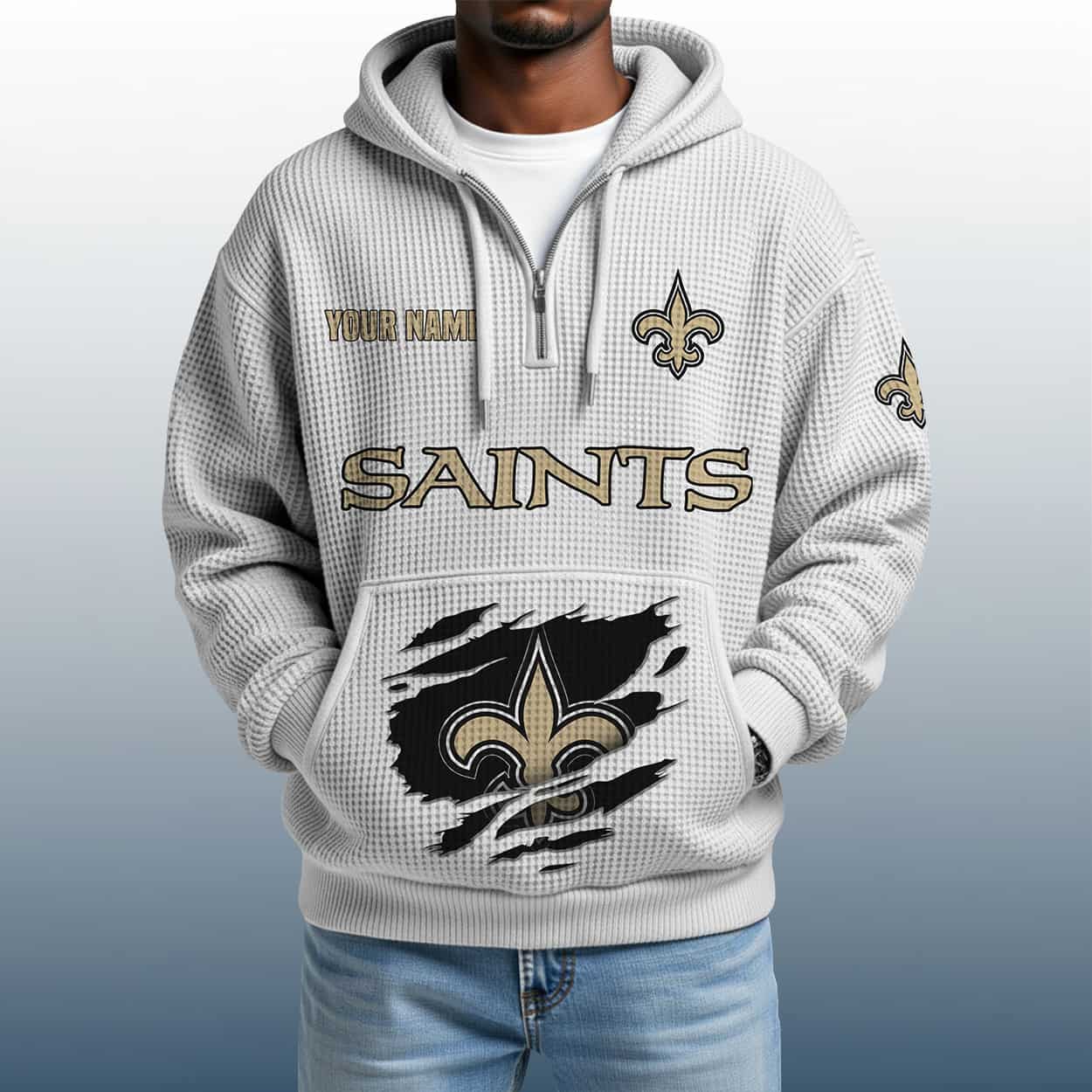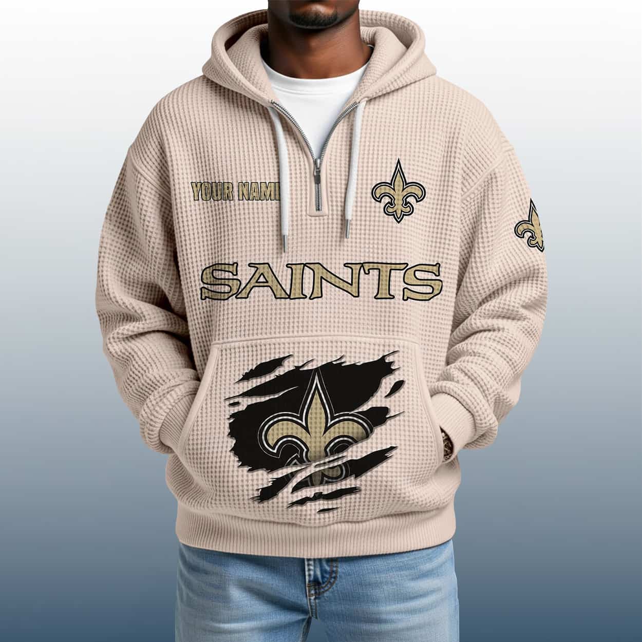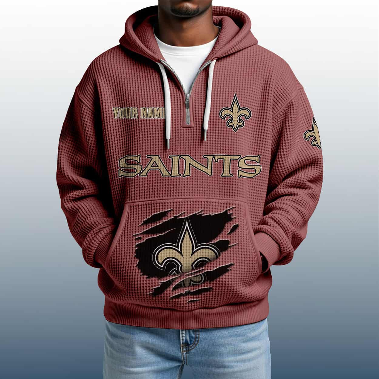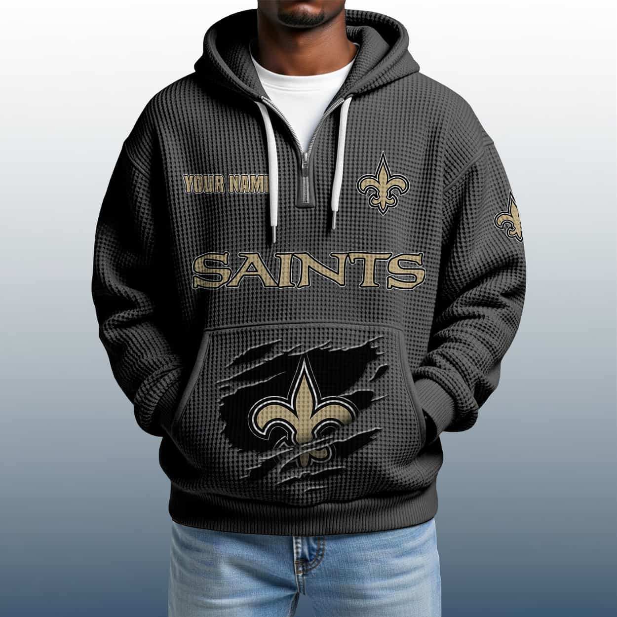 2025 Personalized Saints Quarter Zip Waffle Hoodie