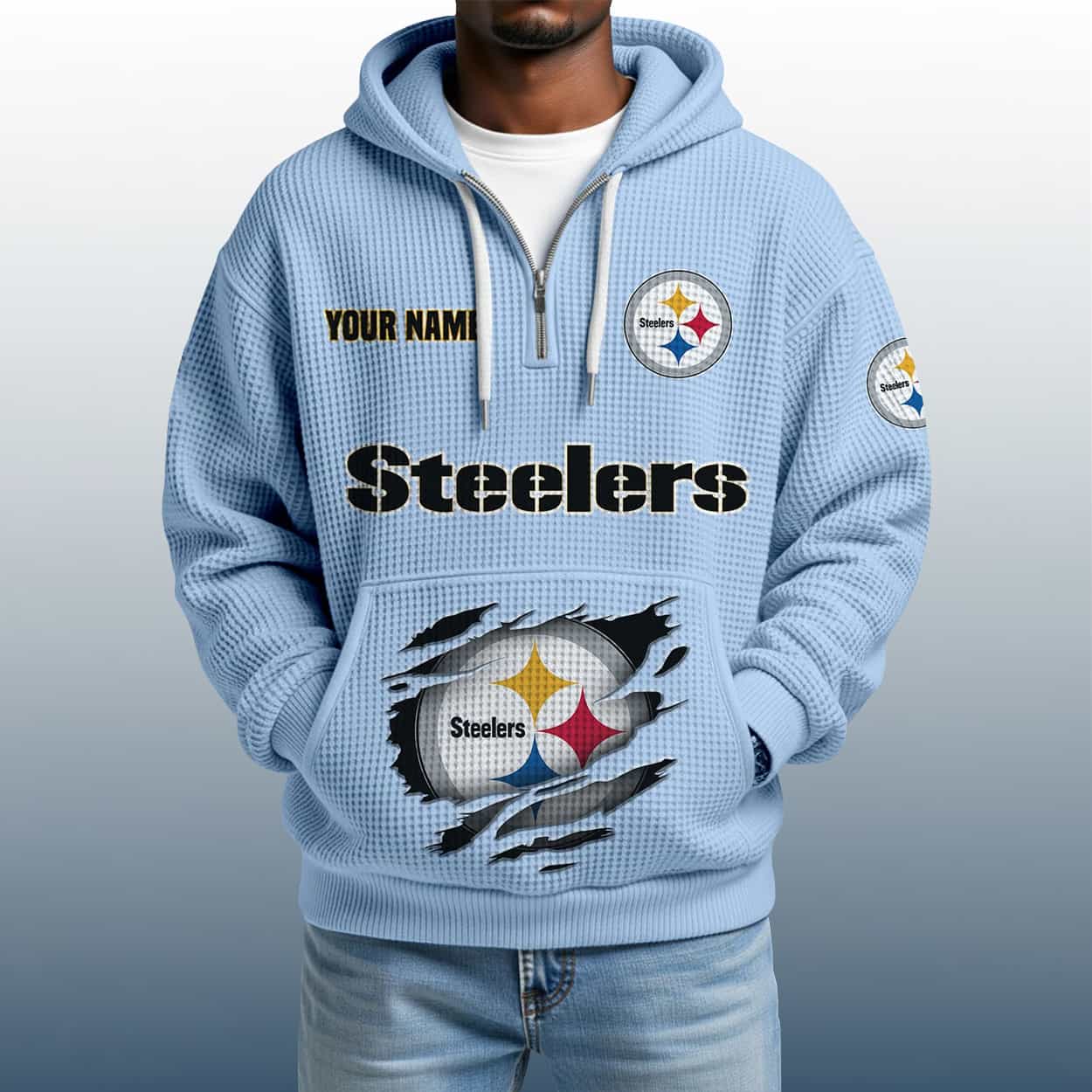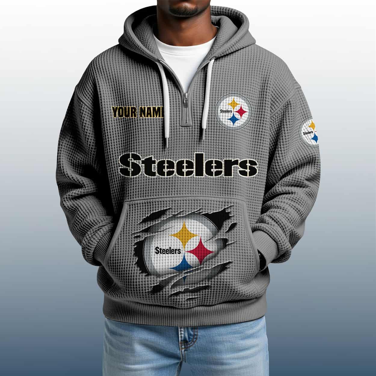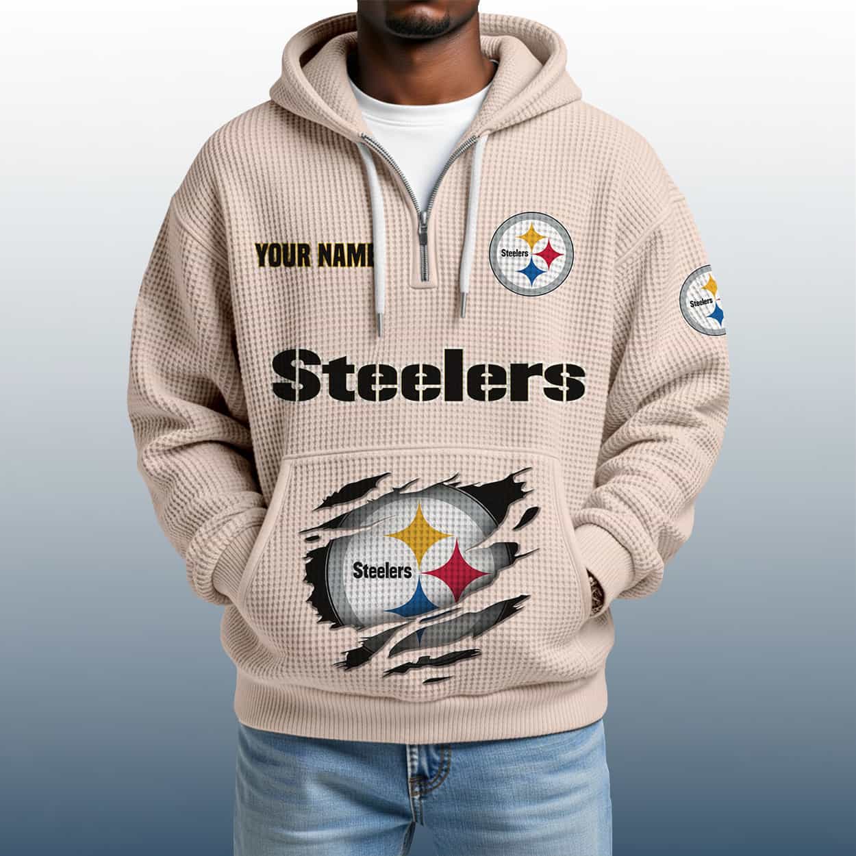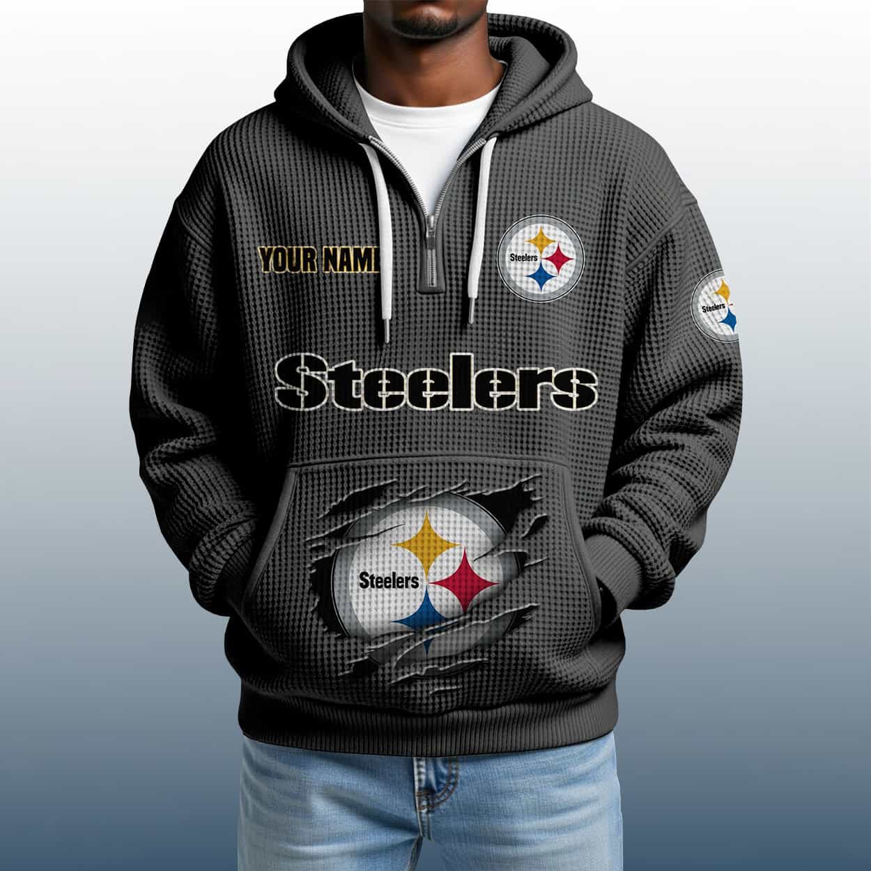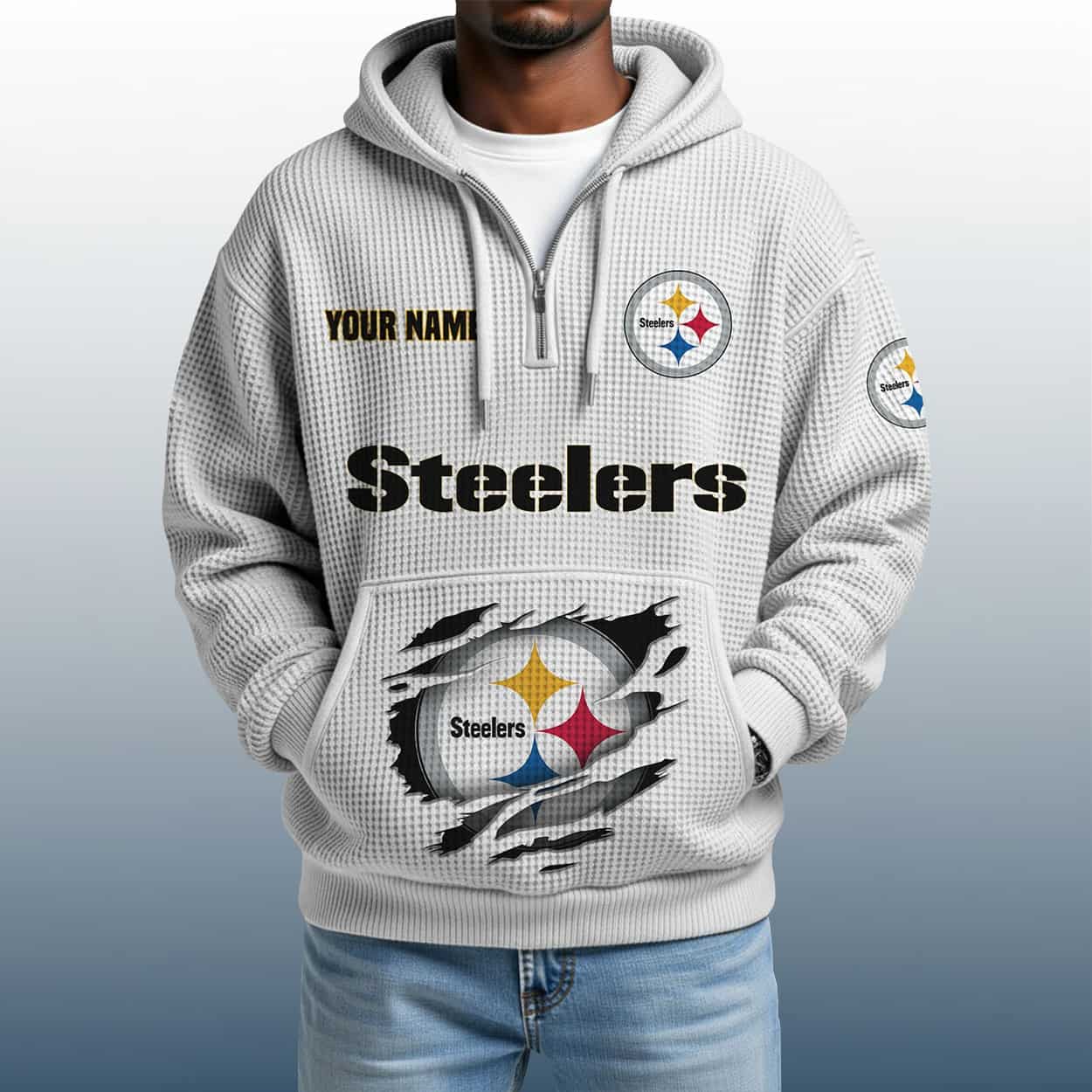 Forge Your Legacy in 2025 Personalized Steelers Quarter Zip Waffle Hoodie!