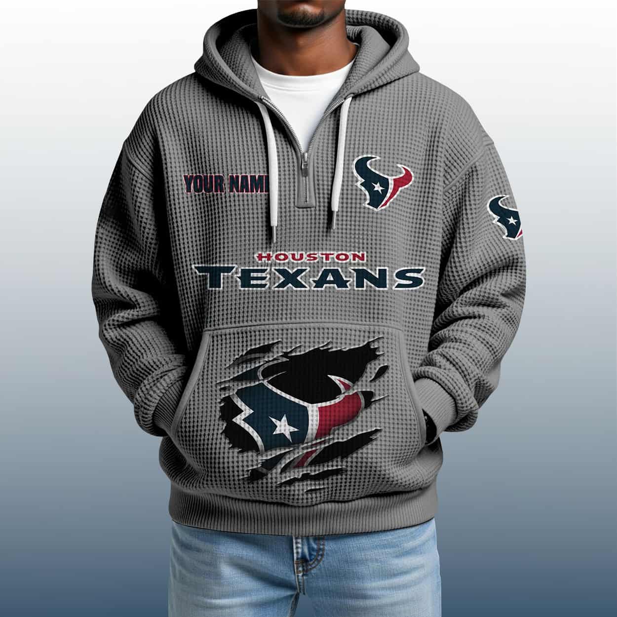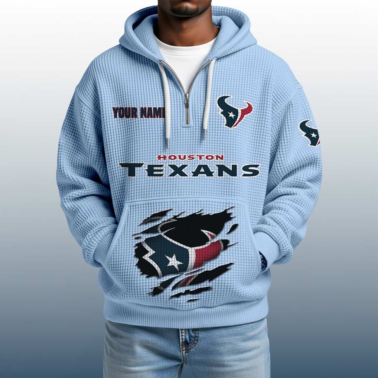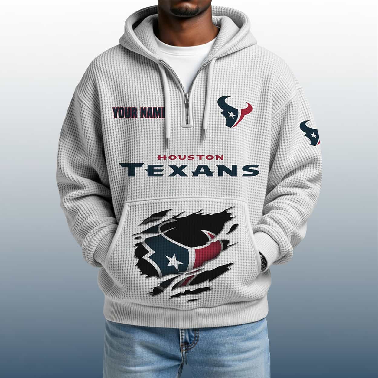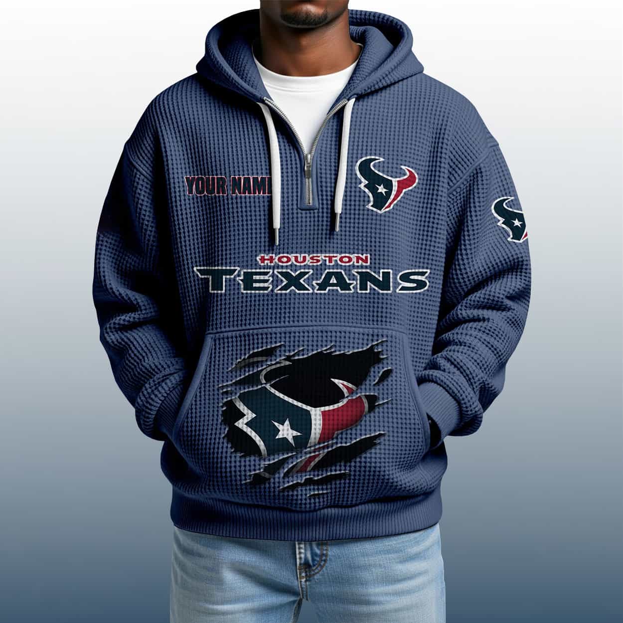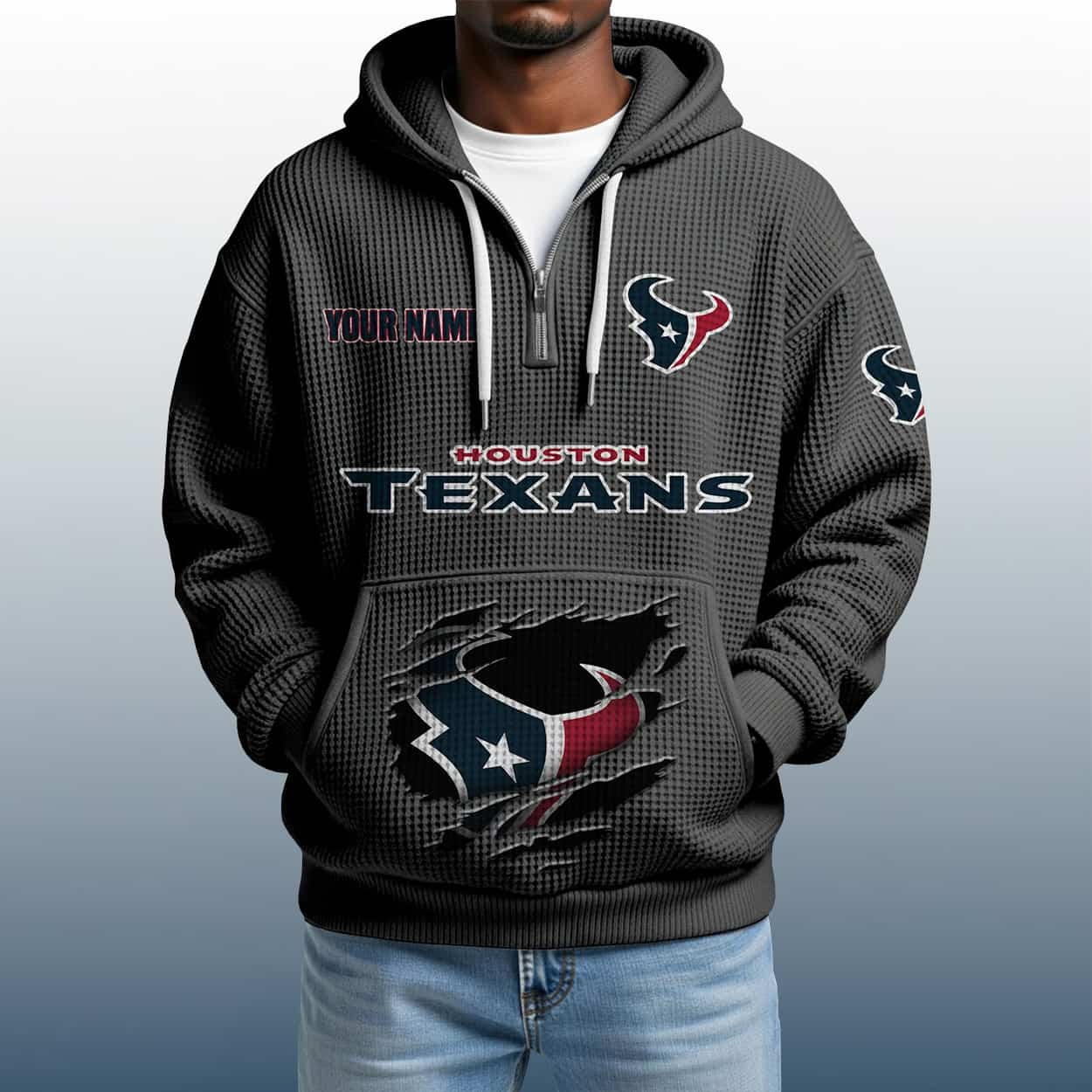 Ready to rep the Texans with unstoppable style? Grab your 2025 Personalized Texans Quarter Zip Waffle Hoodie now and let your name break through the noise.