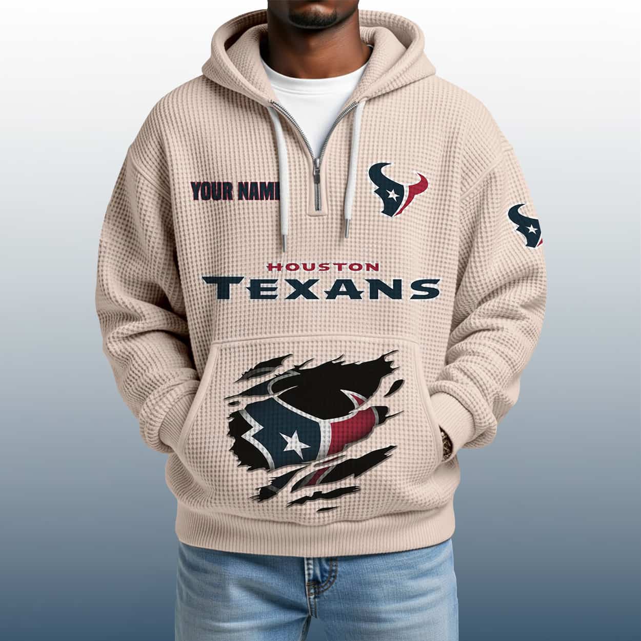 2025 Personalized Texans Quarter Zip Waffle Hoodie