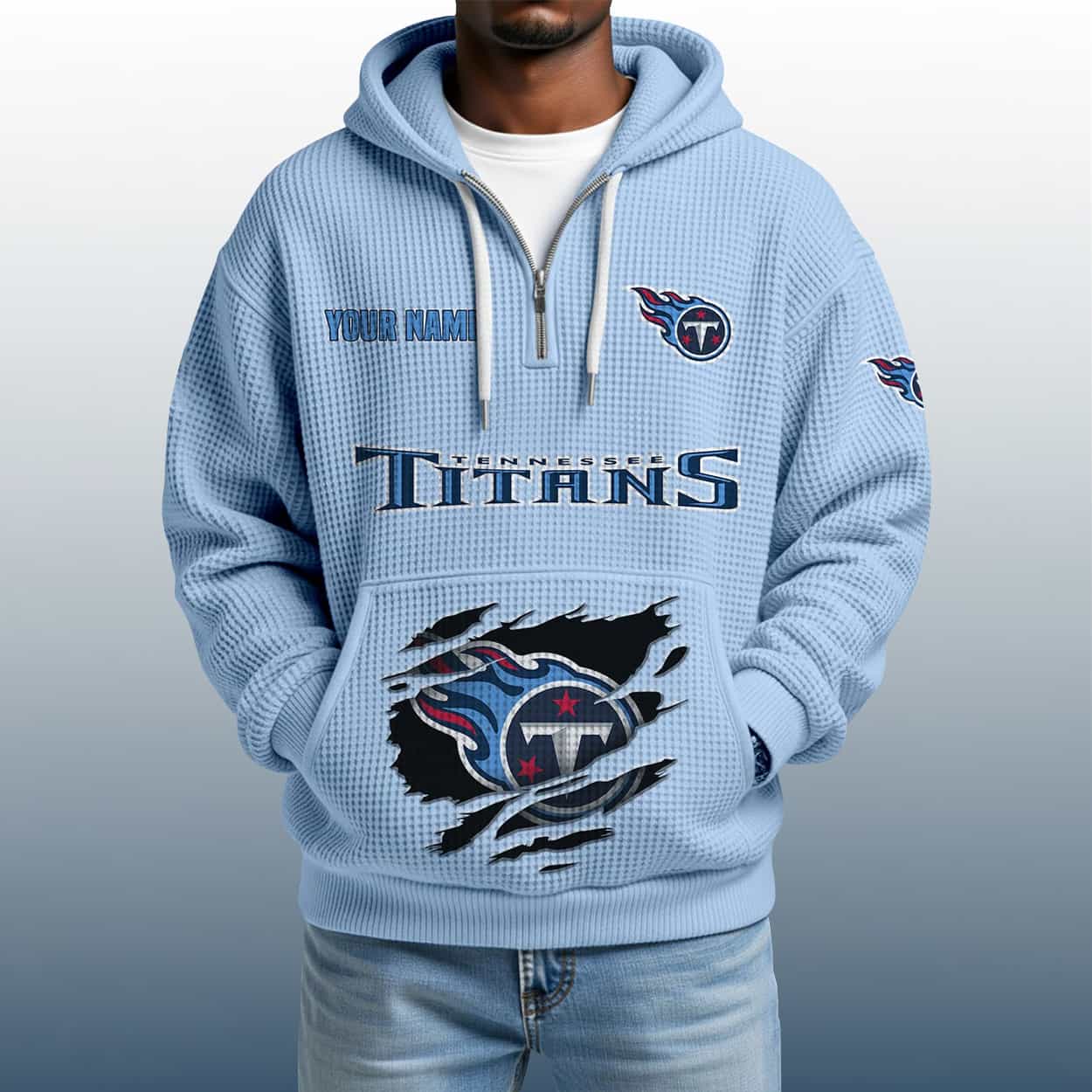 Light It Up with Titans Swagger—Your Name, Your Team, Your 2025 Personalized Titans Quarter Zip Waffle Hoodie!