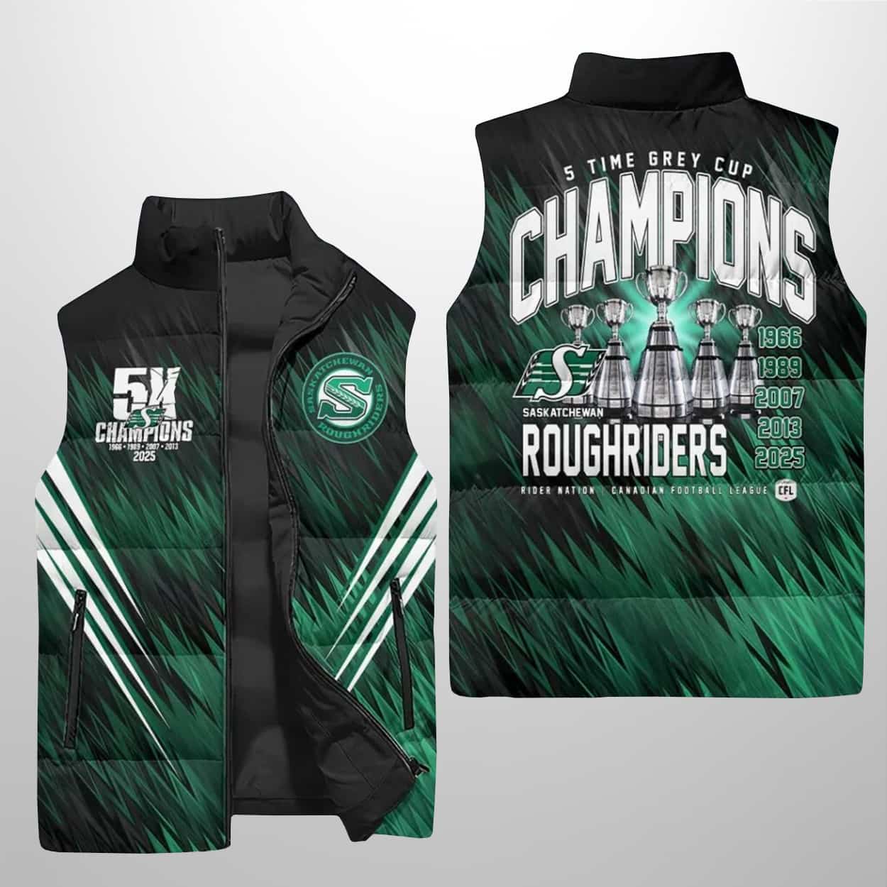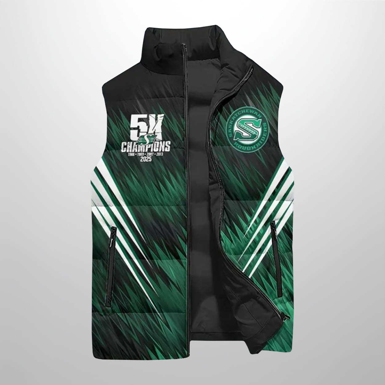 Layered in Legacy: The 2025 Saskatchewan Roughriders 5 Time Grey Cup Champions Puffer Vest