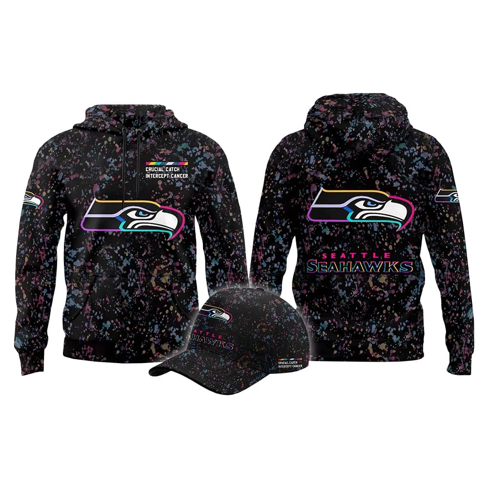 2025 Seahawks Crucial Catch Intercept Cancer Hoodie Cap