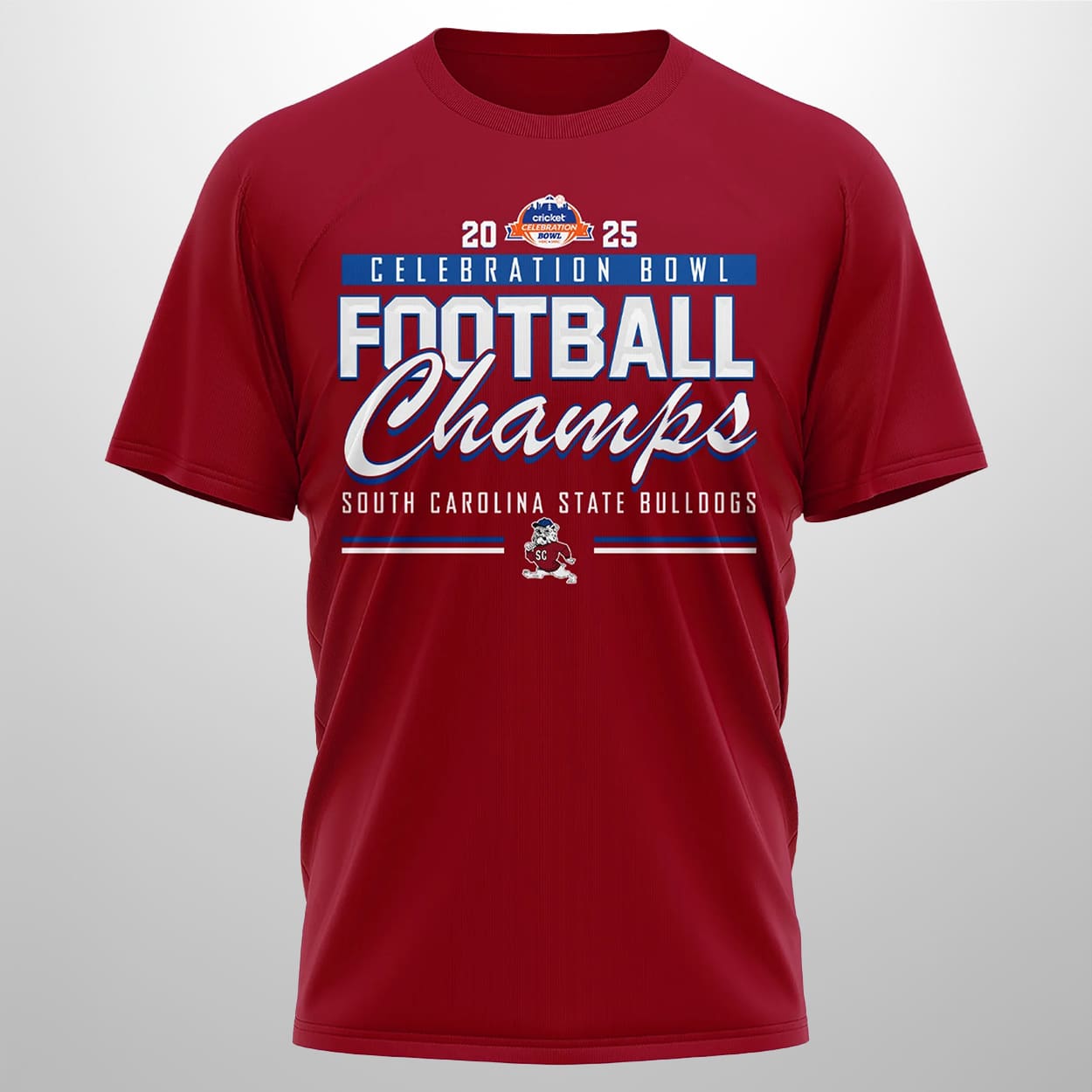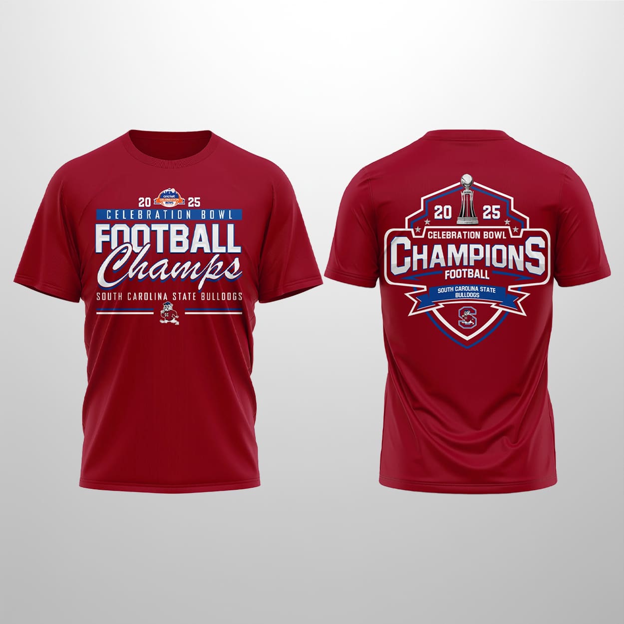 Celebrate victory in style with the 2025 South Carolina State Celebration Bowl Champs Shirt—bold graphics, proud messaging, and championship swagger for true Bulldogs fans.