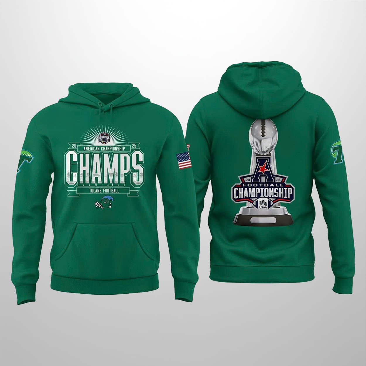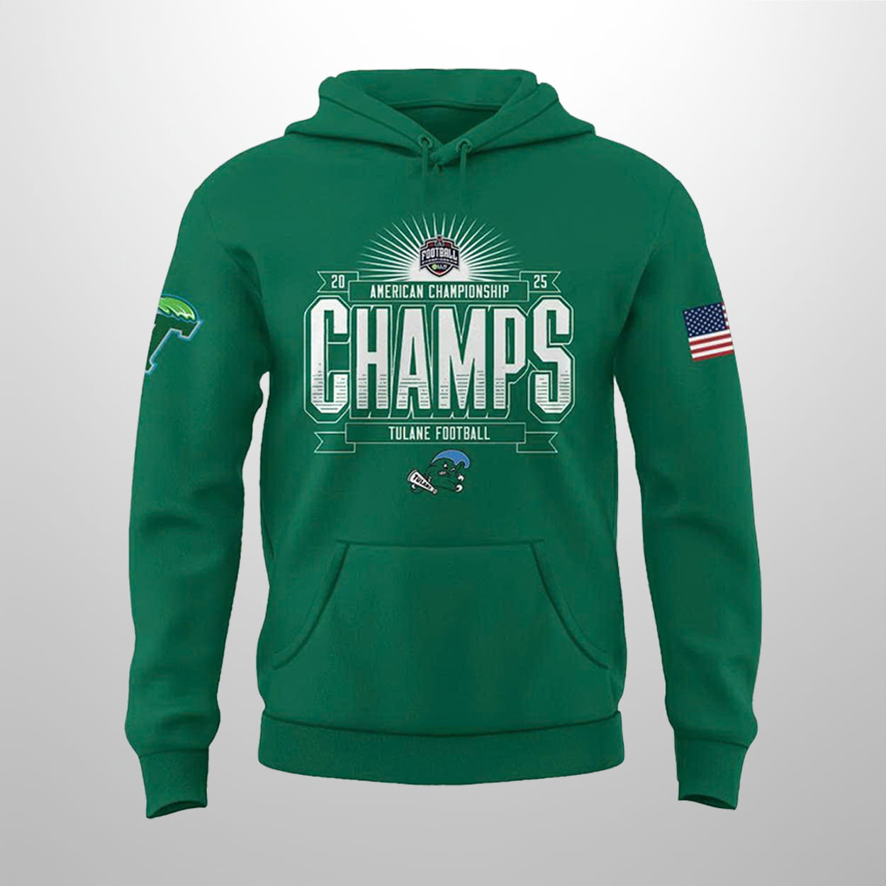 Wave of Glory: 2025 Tulane Football American Championship Champs Hoodie