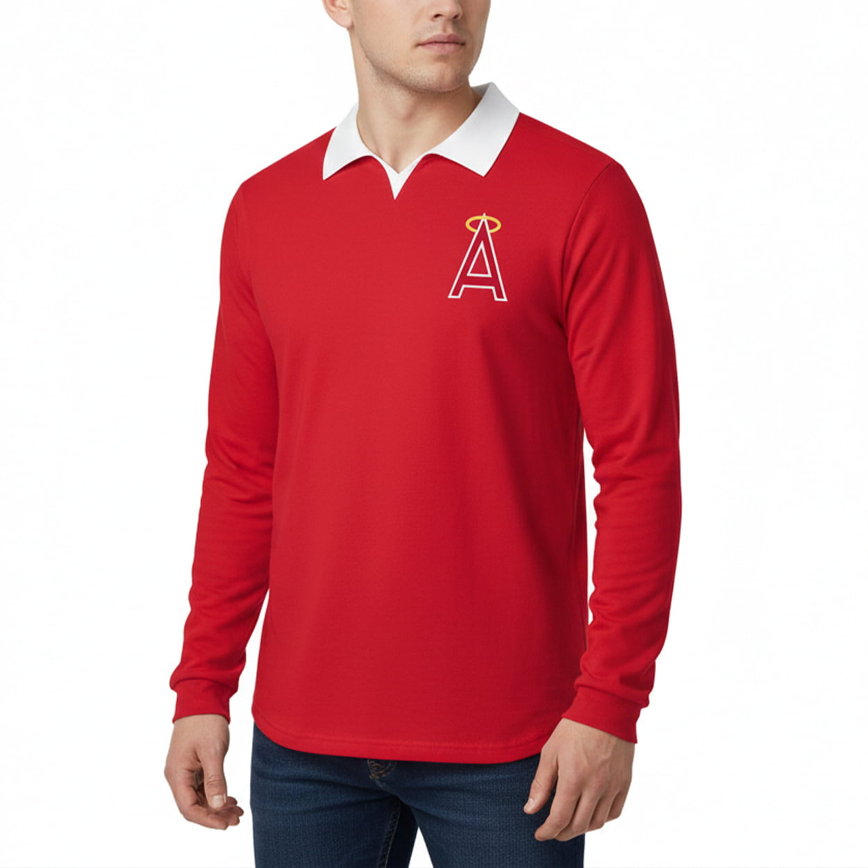 This shirt is a bold blast from the past with a fresh twist. This long-sleeve red stunner features a crisp white collar that adds a retro pop to your game-day look. On the left chest, the iconic stylized “A” sits proudly beneath a golden halo—an unmistakable nod to the Los Angeles Angels’ legacy. Whether you’re catching fly balls or catching compliments, this shirt is designed to stand out in the crowd and keep your fan status front and center.