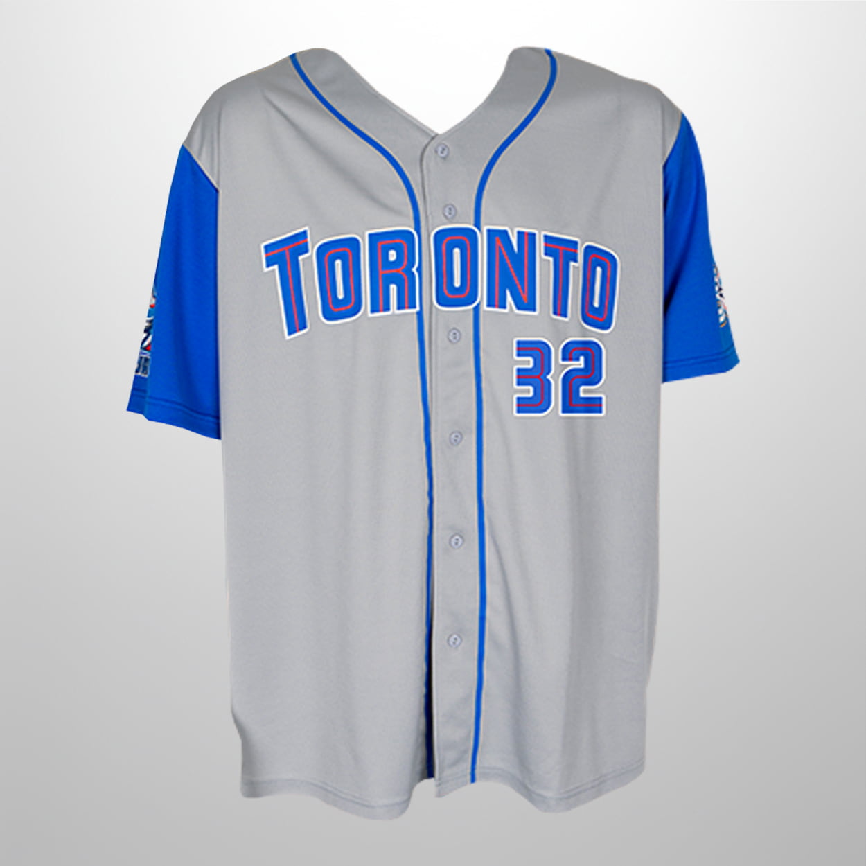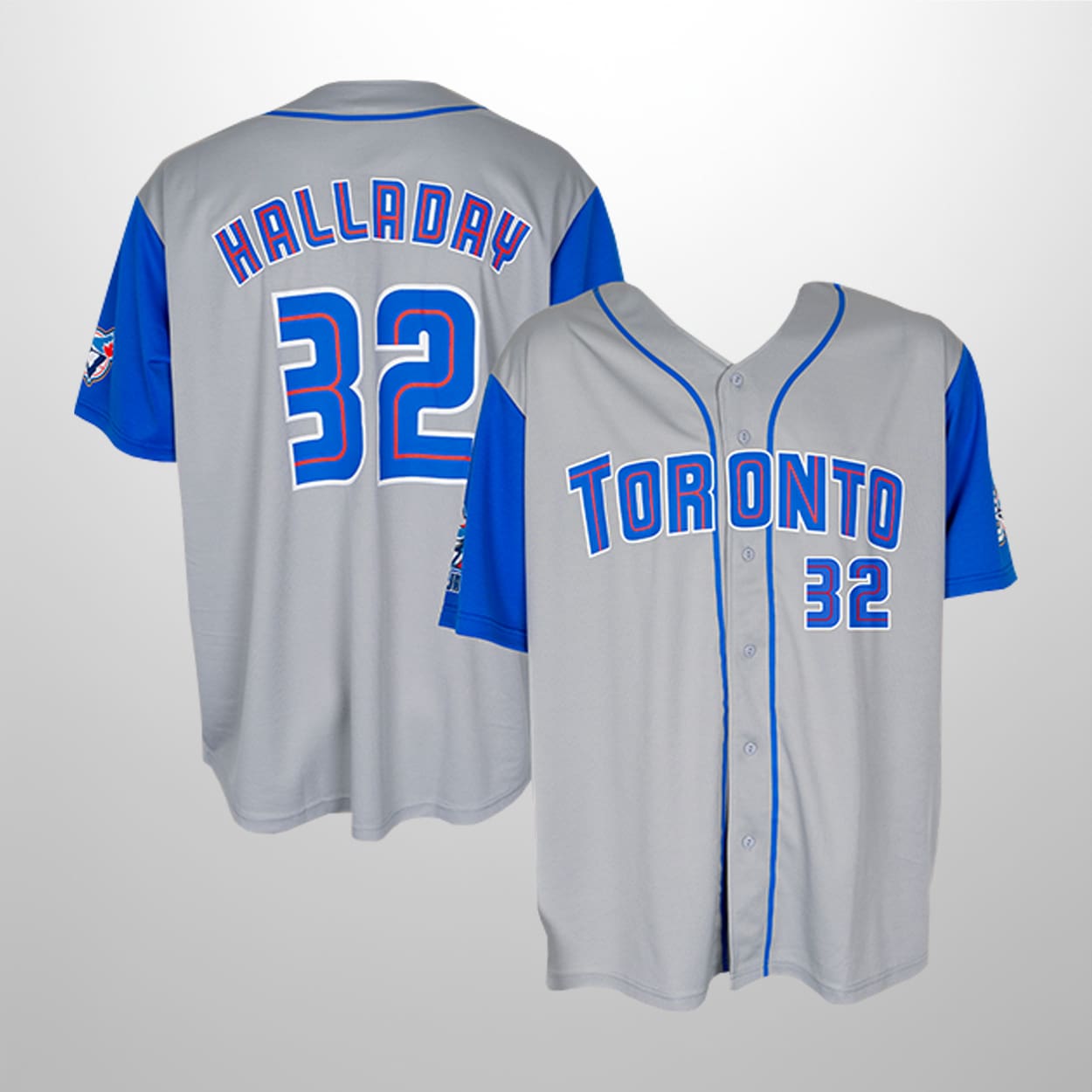 This jersey is a collector’s dream and a fan’s delight. With its sleek gray body accented by bold blue sleeves, this jersey proudly showcases “TORONTO” across the chest in striking blue letters outlined in white. The number 32 sits just below, a nod to Halladay’s unforgettable presence on the mound. On the back, “HALLADAY” is printed above the same number, ensuring his legacy is front and center every time you wear it. This jersey is more than apparel—it’s a piece of baseball history brought back to life.