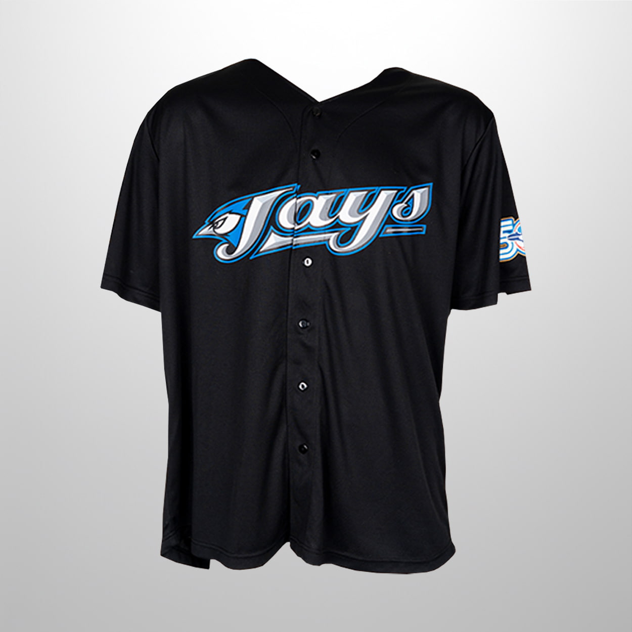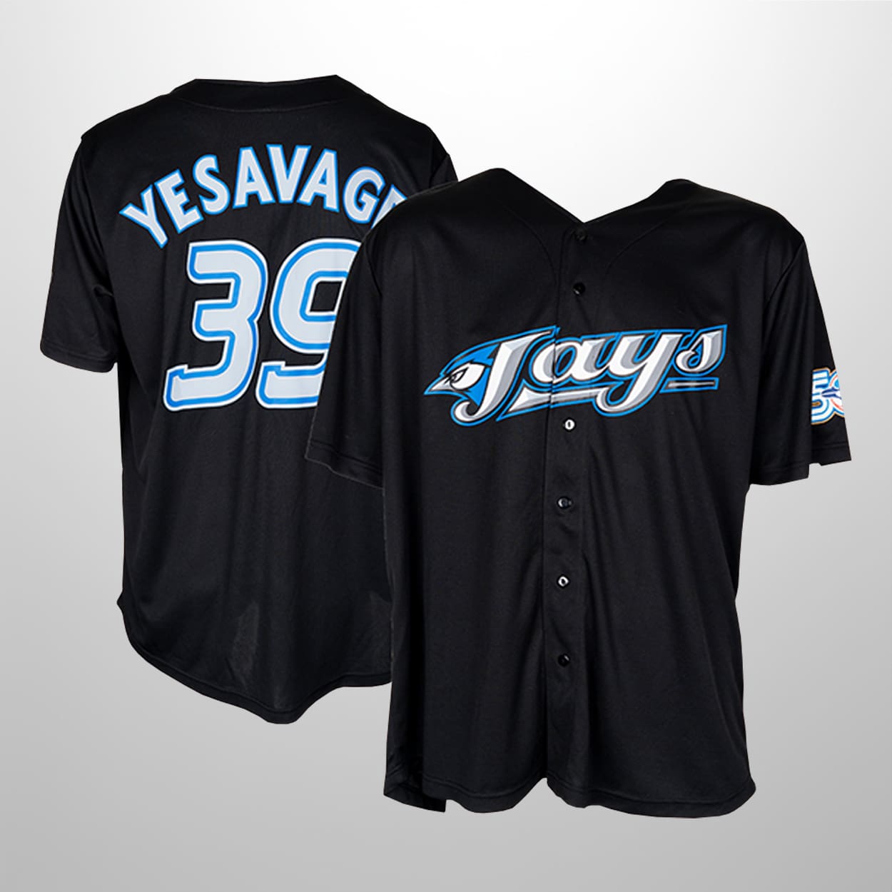 This jersey is a striking piece of fan gear that commands attention. In sleek black, the front showcases “Jays” in a dynamic script outlined in light blue and white, while the back proudly features “YESAVAGE” above the number 39 in matching bold lettering. Adding to its commemorative appeal, the left sleeve carries a special “50” patch, marking the franchise’s milestone anniversary. This jersey blends modern energy with heritage, making it a standout giveaway for Opening Night.