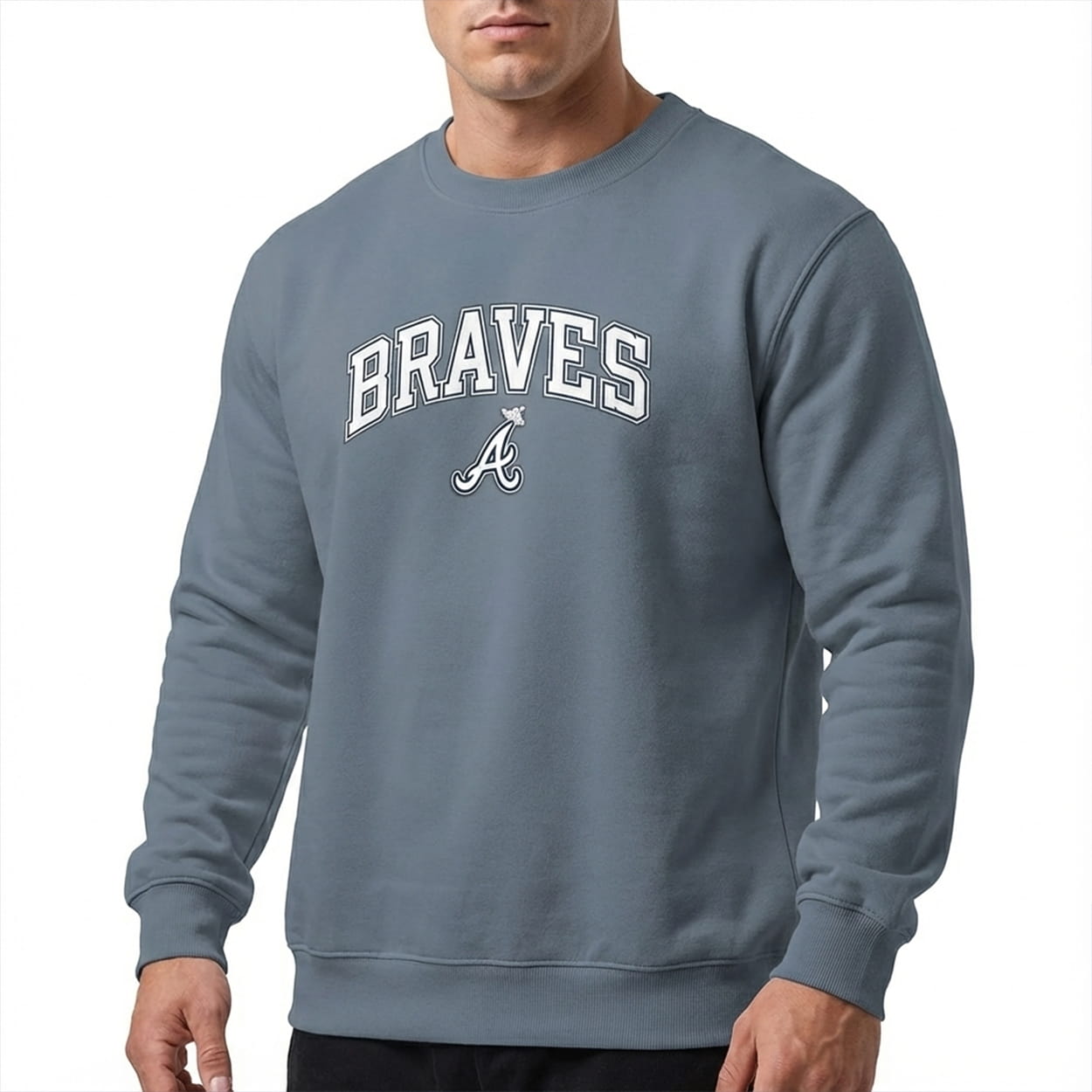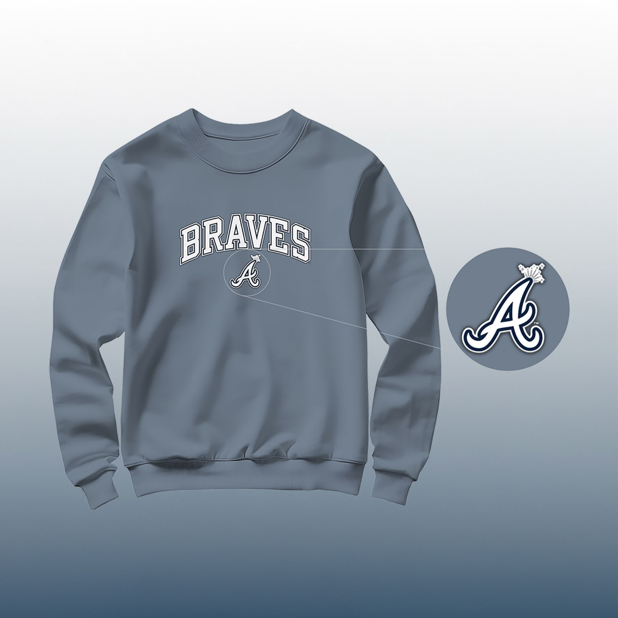 Get ready to turn heads at Truist Park with this sweatshirt! This cozy blue-gray pullover is more than just game-day gear—it’s a celebration of fierce fandom and fabulous friendship. Across the chest, “BRAVES” pops in crisp white capital letters, commanding attention with classic confidence. Just below, the iconic stylized “A” logo—adds a punch of Atlanta pride that’s equal parts sporty and stylish. Whether you’re cheering from the stands or sipping cocktails with your crew, this sweatshirt brings the heat.