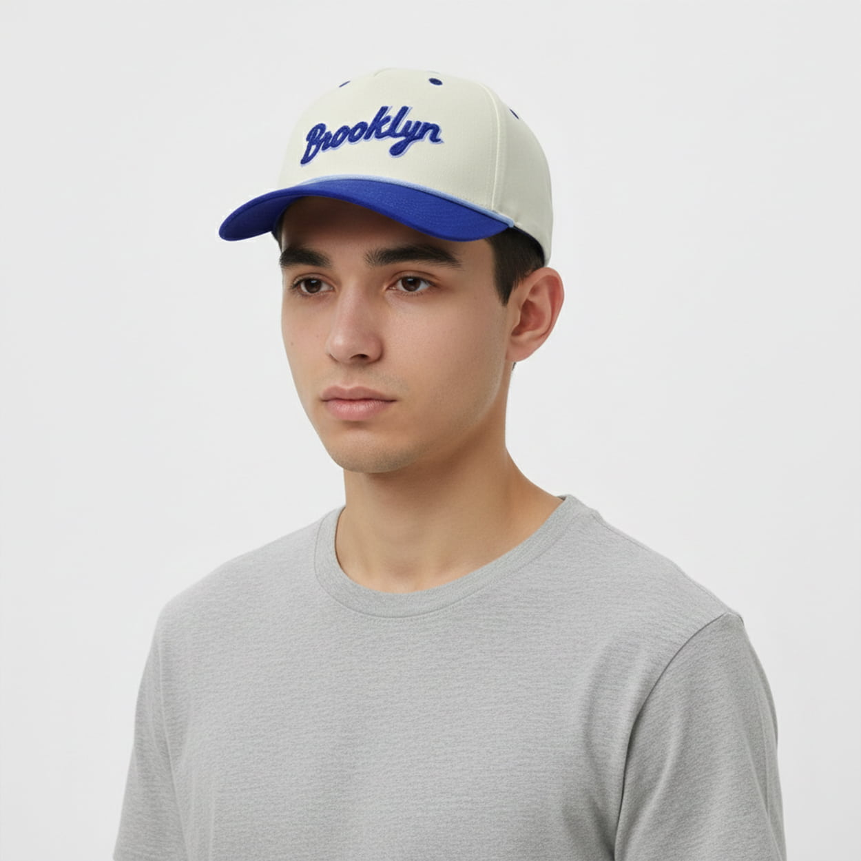 This cap is a true collector’s piece for fans who want to wear their team spirit with flair. This cap features a cream-colored crown paired with a striking royal blue brim, button, and eyelets. Across the front, the word “Brooklyn” is embroidered in flowing blue cursive, giving the cap a timeless yet playful look. The design balances classic urban style with the Cyclones’ energetic personality, making it a cap that turns heads both at the ballpark and on the streets.