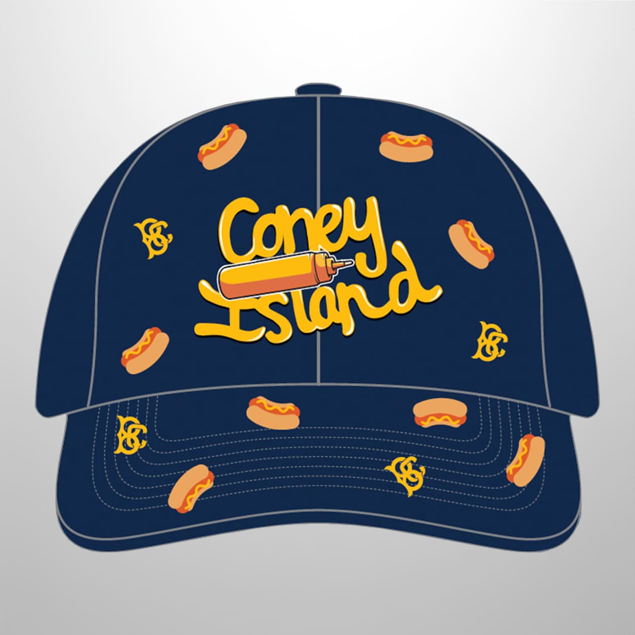 This hat is the ultimate fan accessory for 2026. Front and center, “Coney Island” pops in bold yellow lettering, cleverly integrated with a hot dog graphic that instantly sets the tone for this tasty tribute. Scattered across the navy blue cap are cheerful hot dog illustrations, adding a quirky, lighthearted vibe. A stylized yellow “BC” emblem with a swirl design completes the look, tying the cap back to the Cyclones’ iconic seaside home. It’s a design that’s equal parts playful and nostalgic, perfect for fans who want to wear their love for baseball and boardwalk fun.