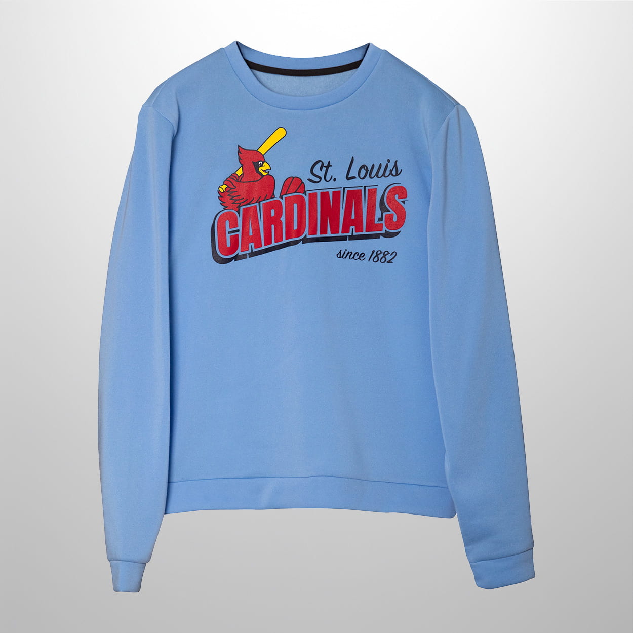 This sweatshirt is a cozy classic with a fresh twist, perfect for fans who love timeless team spirit. Set against a cool light blue backdrop, the front design features a vibrant red cardinal perched confidently on a yellow baseball bat—an unmistakable nod to the team’s iconic logo. Just below, “St. Louis CARDINALS” is boldly printed in red and black, making your allegiance crystal clear. And for a touch of heritage, the phrase “since 1882” sits proudly beneath the team name, reminding everyone of the Cardinals’ legendary legacy.