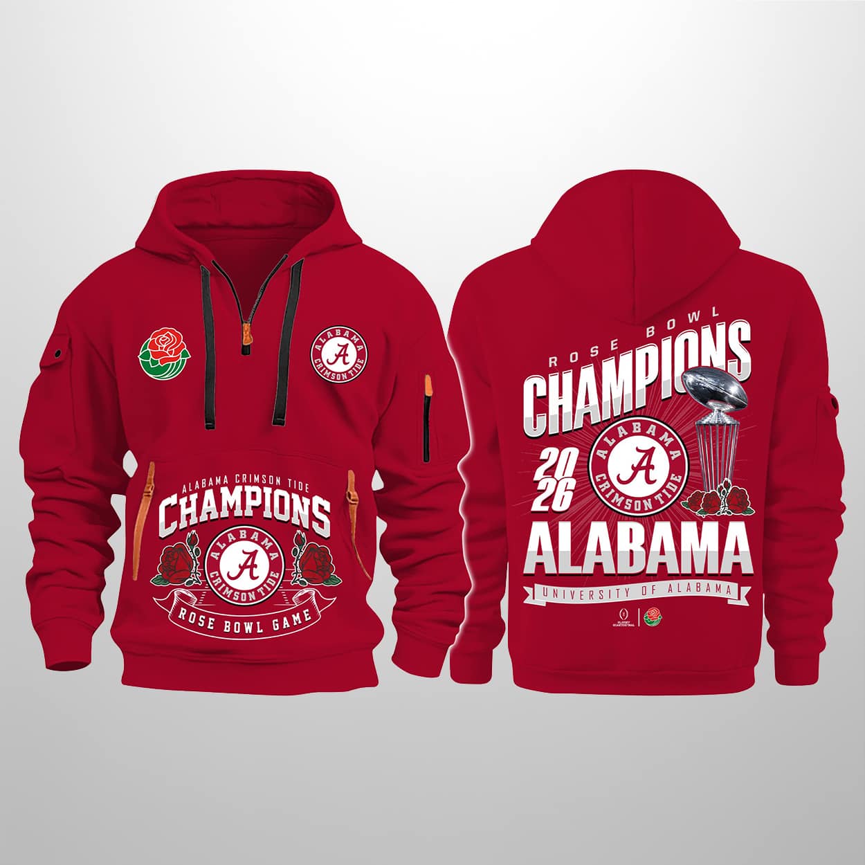 Tide of Triumph: The 2026 Crimson Tide Rose Bowl Champions Quarter Zip Hoodie