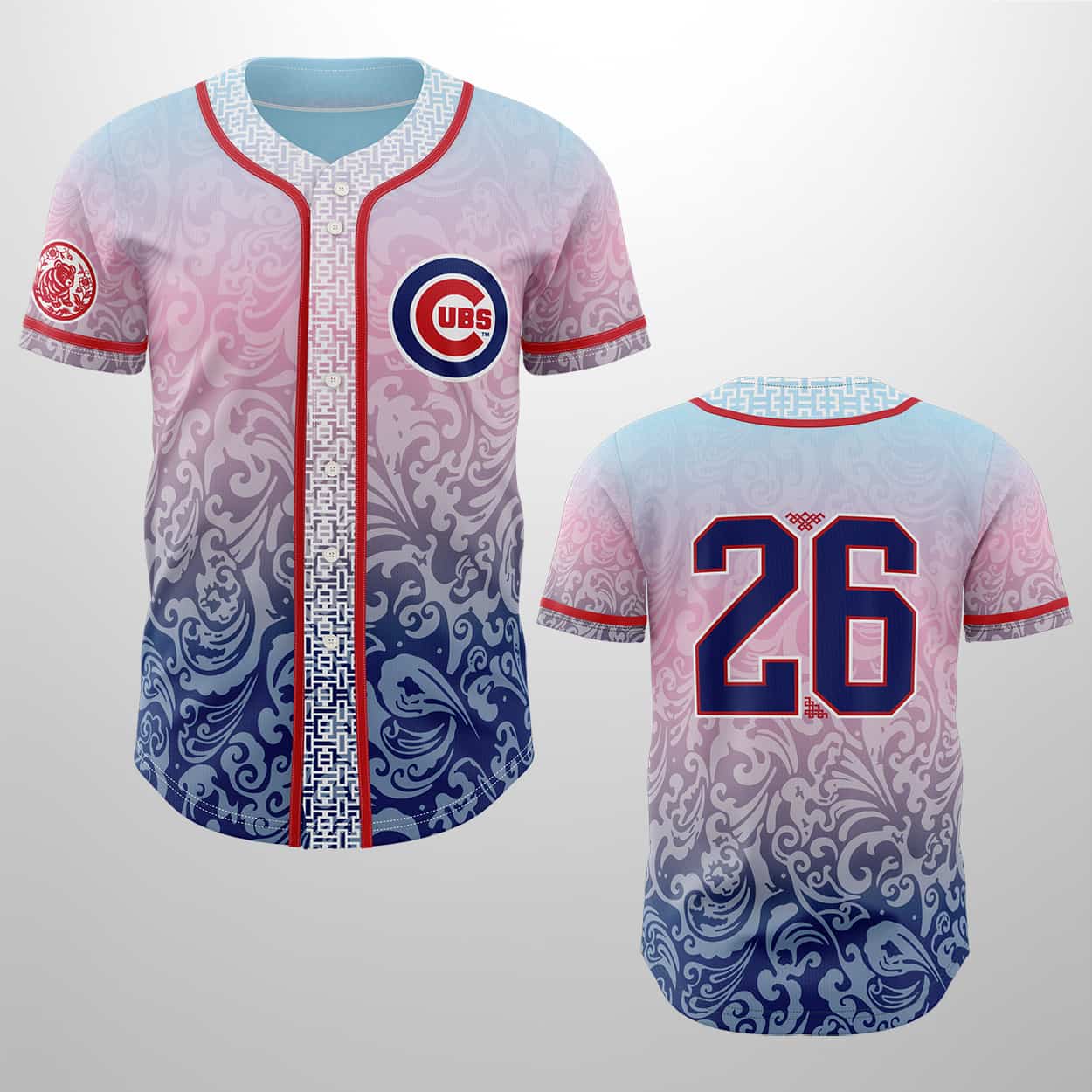Designed by acclaimed Filipino-American artist Louis De Guzman, this jersey is more than just fan gear; it’s a tribute to the “off the beaten path” journeys of the AAPI community. The whimsical, abstract linework—a signature of De Guzman’s style—symbolizes the fluidity and resilience of the immigrant experience. Look closely at the sleeve and you’ll find a special circular patch featuring a traditional red lion motif, symbolizing strength and good fortune. Even the number “26” on the back is treated with cultural flair, adorned with knot-work accents that represent the interconnectedness of Chicago’s diverse neighborhoods.
