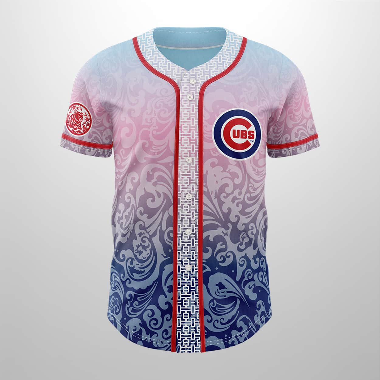 Step up to the plate with this jersey, a stunning fusion of sport and soul. This year’s giveaway is a visual grand slam, moving away from traditional pinstripes to embrace a high-energy, pastel gradient that transitions from a soft sunset pink to a deep, oceanic blue. The iconic Cubs “C” logo remains the heart of the design, but it’s reimagined within a canvas of swirling, cloud-like patterns that flow across the sleeves and body.